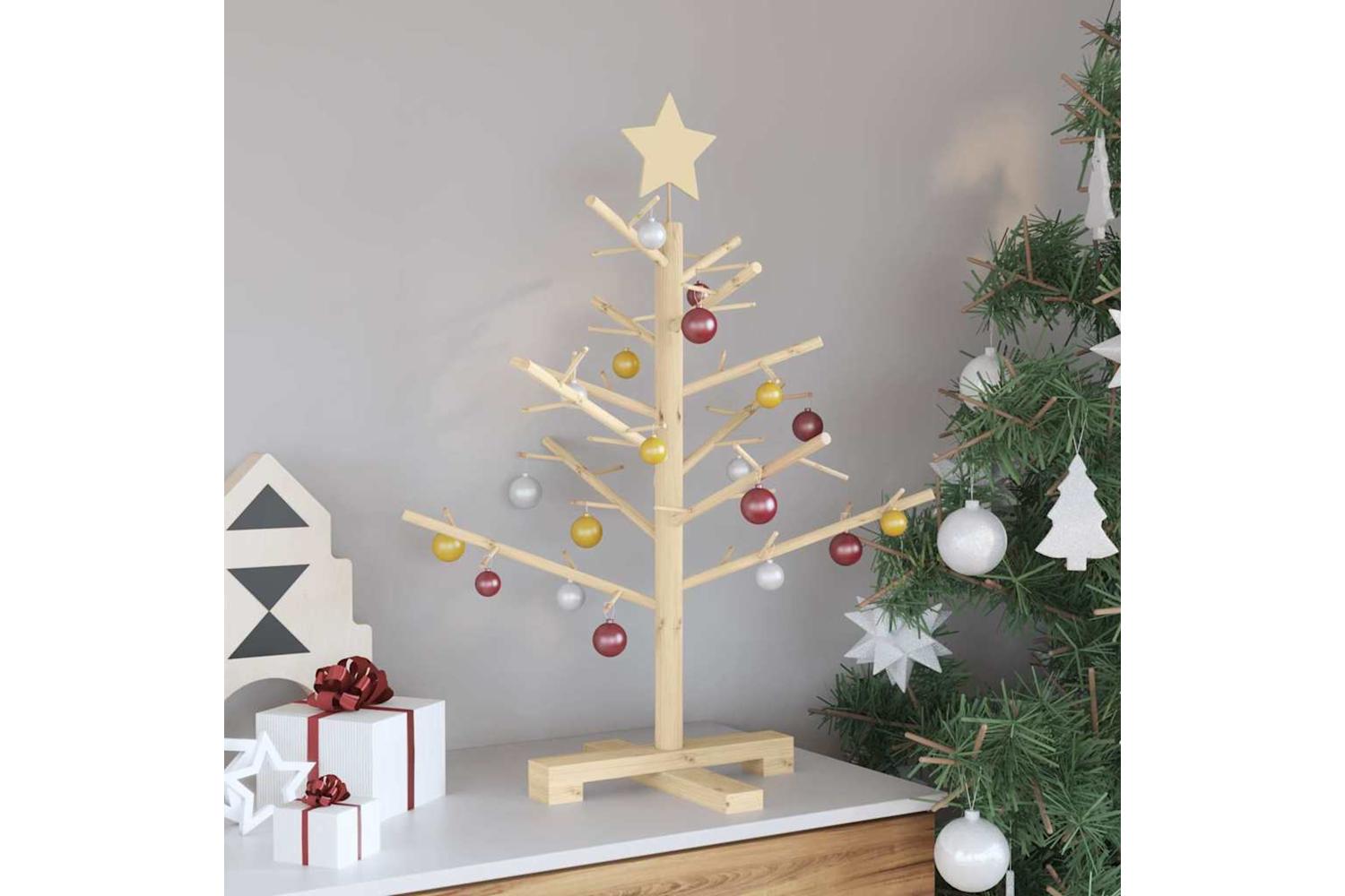 Vidaxl Wooden Christmas Tree With Stand Natural 75 Cm Solid Pine Wood
