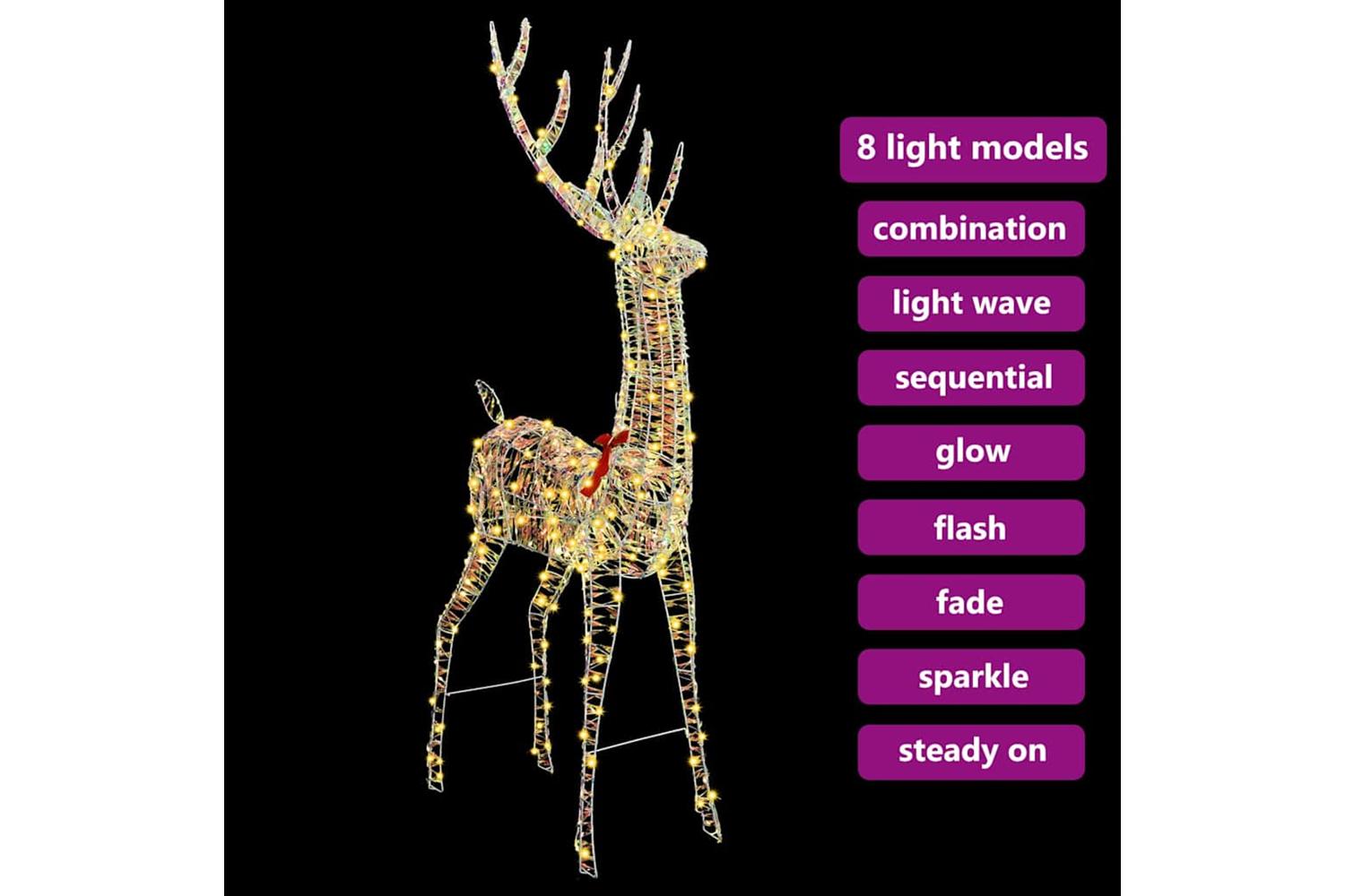 - Warm White LED Strip Lights The integrated LED strip lights emit a soft, warm white glow, evoking cozy holiday memories. These lights are energy-efficient and designed for long-lasting performance, ensuring the reindeer remains a luminous centerpiece throughout the Christmas season, adding charm and warmth to any setting.
