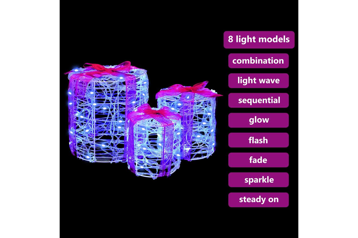 This Gift Box Decoration is a delightful piece designed to accentuate the charm of your space with a touch of modern elegance. The smooth acrylic material manifests a refined aesthetic, making it an impeccable choice for those who treasure clean lines and minimal ornamentation. Ideal for Christmas, its compact size facilitates effortless integration into a variety of environments, including living rooms, offices, or festive gatherings. The inclusion of LED strip lights further boosts its appeal by offering a soft, enchanting glow that enhances any setting. This unique combination of style and convenience makes it an attractive seasonal adornment.