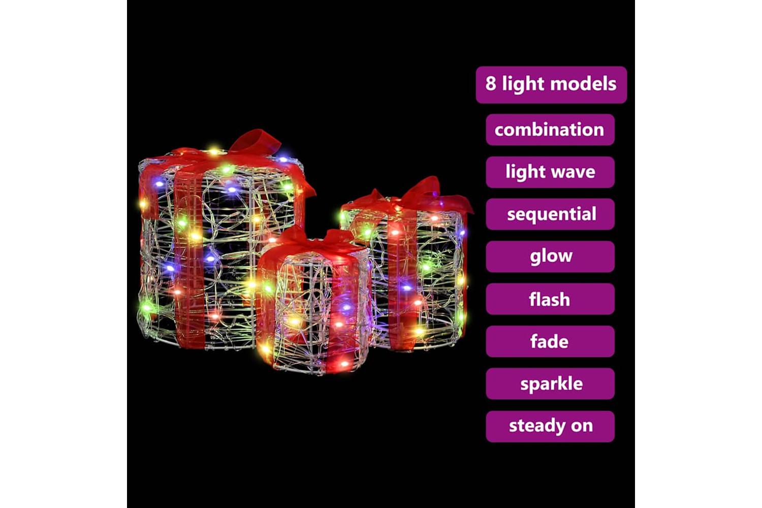 This Gift Box Decoration is a delightful piece designed to accentuate the charm of your space with a touch of modern elegance. The smooth acrylic material manifests a refined aesthetic, making it an impeccable choice for those who treasure clean lines and minimal ornamentation. Ideal for Christmas, its compact size facilitates effortless integration into a variety of environments, including living rooms, offices, or festive gatherings. The inclusion of LED strip lights further boosts its appeal by offering a soft, enchanting glow that enhances any setting. This unique combination of style and convenience makes it an attractive seasonal adornment.
