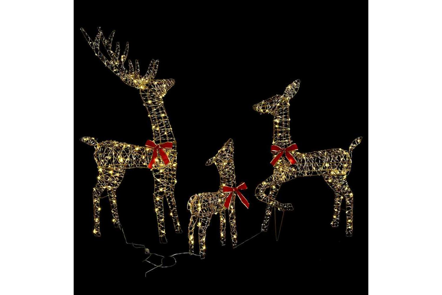 This Reindeer Family set, designed for enhancing your Christmas decor, features a modern style characterized by simplicity and functionality. The set includes three 3D reindeer figurines, each illuminated with warm white LED strip lights that create a cozy holiday atmosphere. This charming set embodies the understated elegance of modern design and the inviting ambiance of the festive season, promising to elevate your holiday decor.