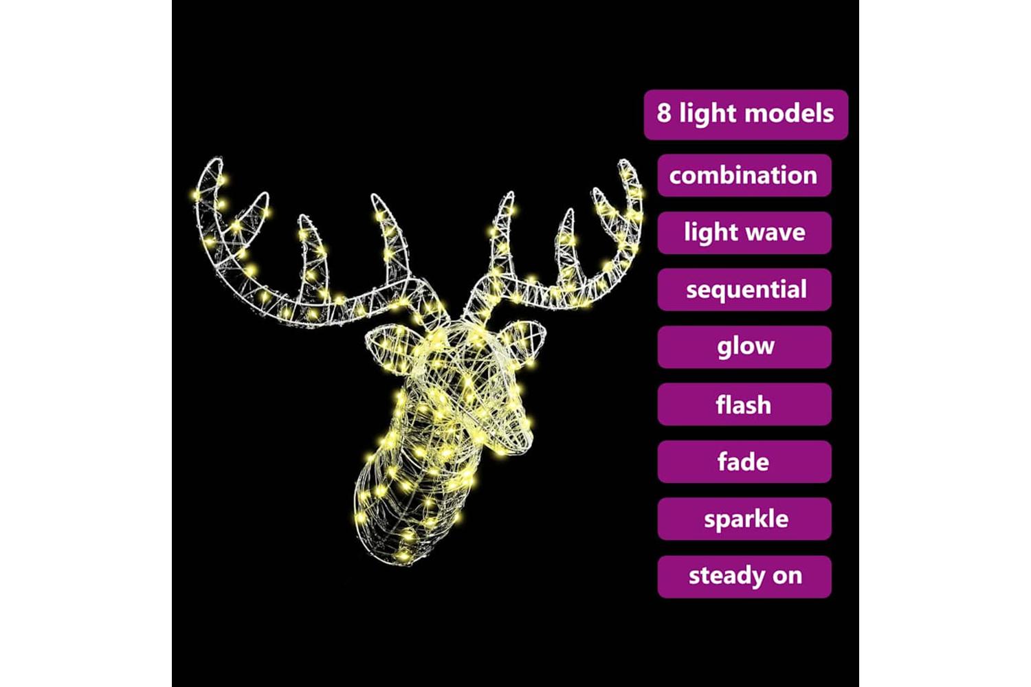 - Acrylic Construction Made from high-quality acrylic, this reindeer decoration combines transparent beauty with exceptional durability, ensuring it stands out in any festive setting. The material is known for its light-diffusing properties, enhancing the glow of LEDs for a breathtaking display. Designed to endure seasonal changes, the piece maintains its charm and appeal over time.