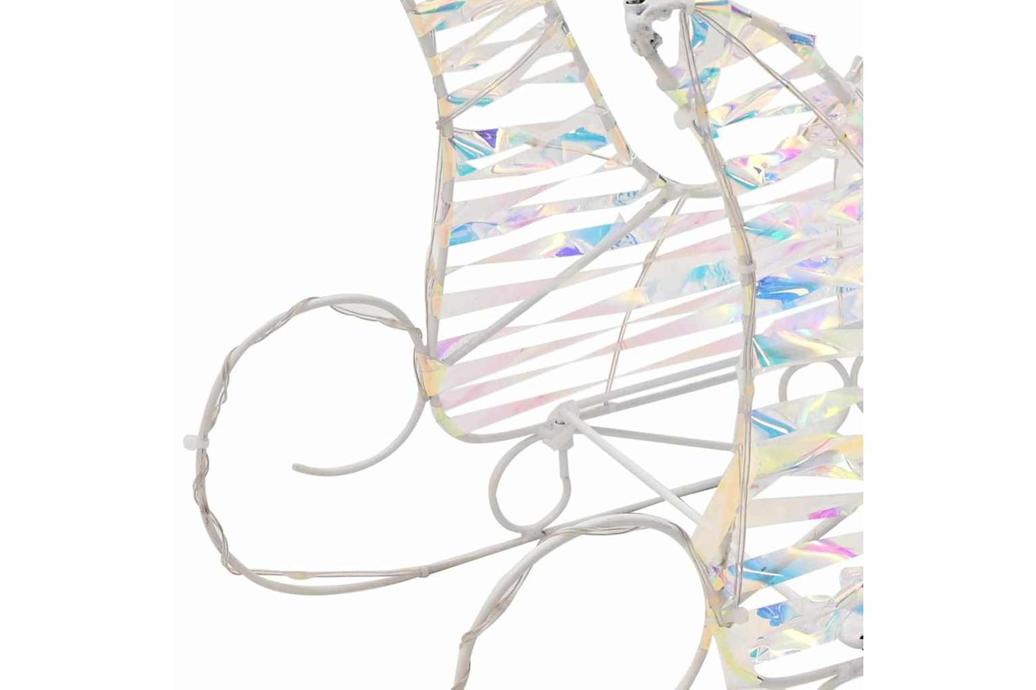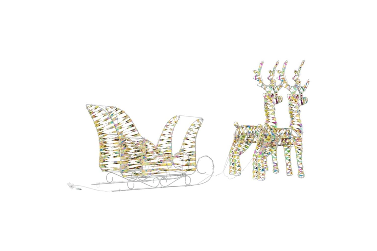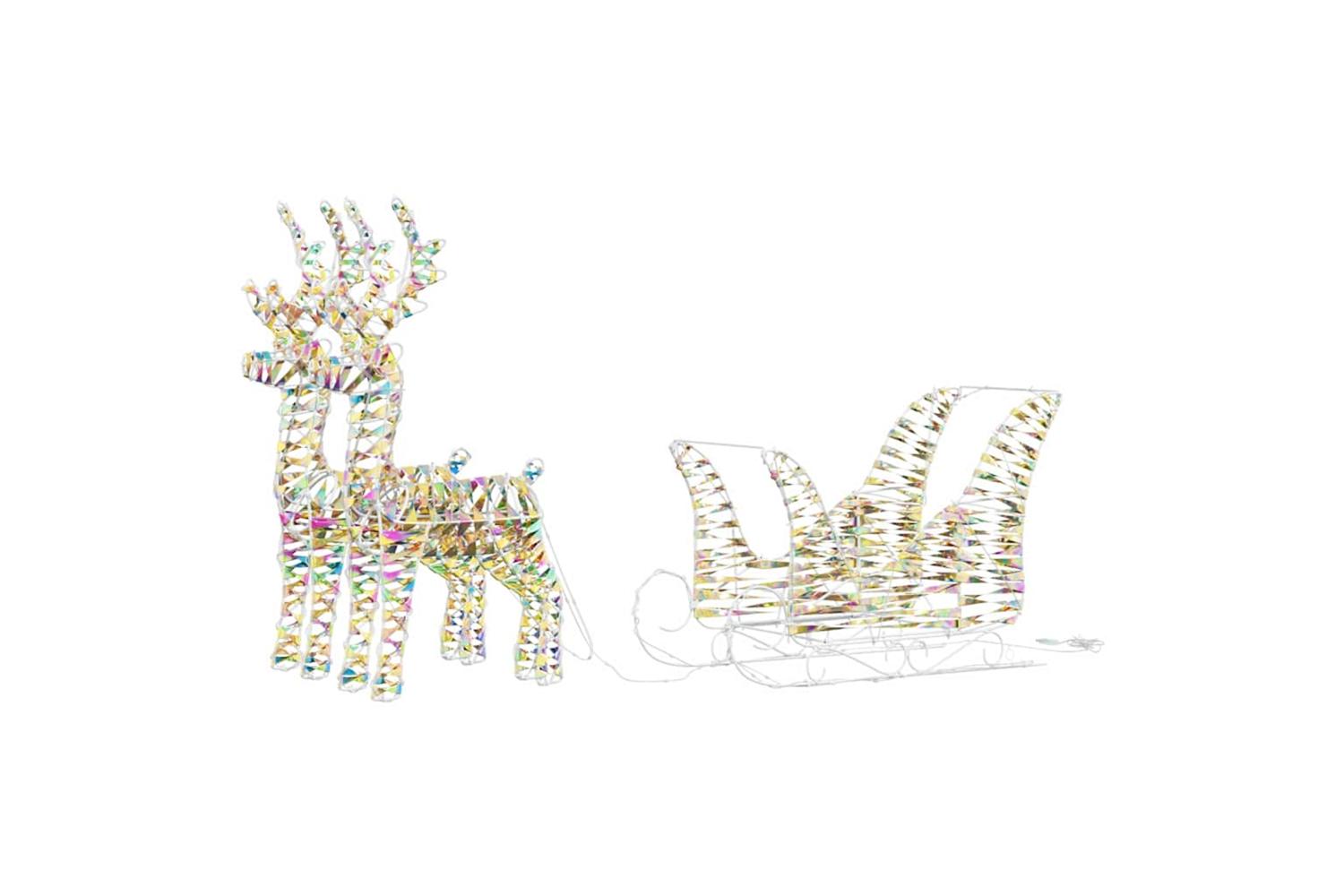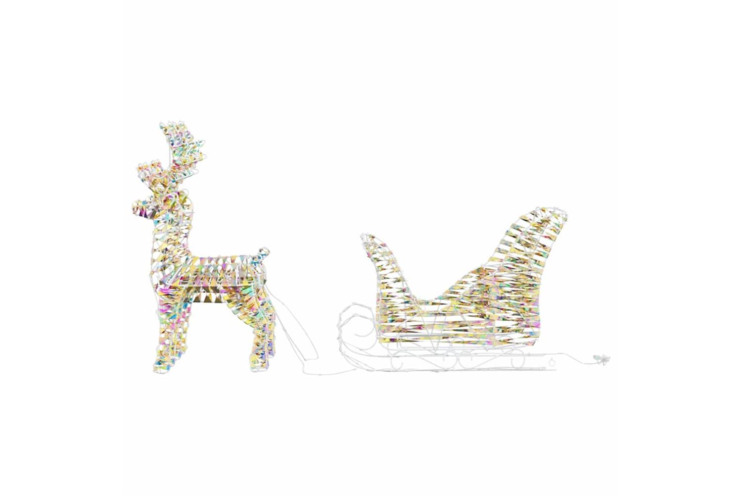 This Reindeer Pull Sleigh Christmas décor piece is the perfect addition to any holiday setup, epitomizing modern elegance with its clean lines and minimalistic style. Crafted with premium materials, it's visually captivating and designed to fit seamlessly into both living rooms and garden terraces, with warm white tones adding an enchanting touch to seasonal decor. Its impressive size makes it a standout feature, while still accommodating versatile placement options indoors or outdoors, marrying classic reindeer imagery with contemporary styling.