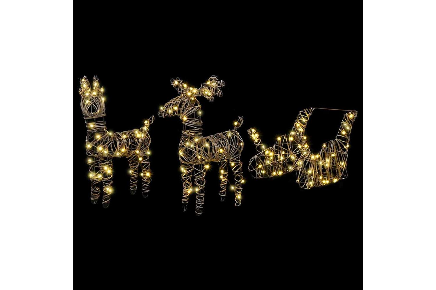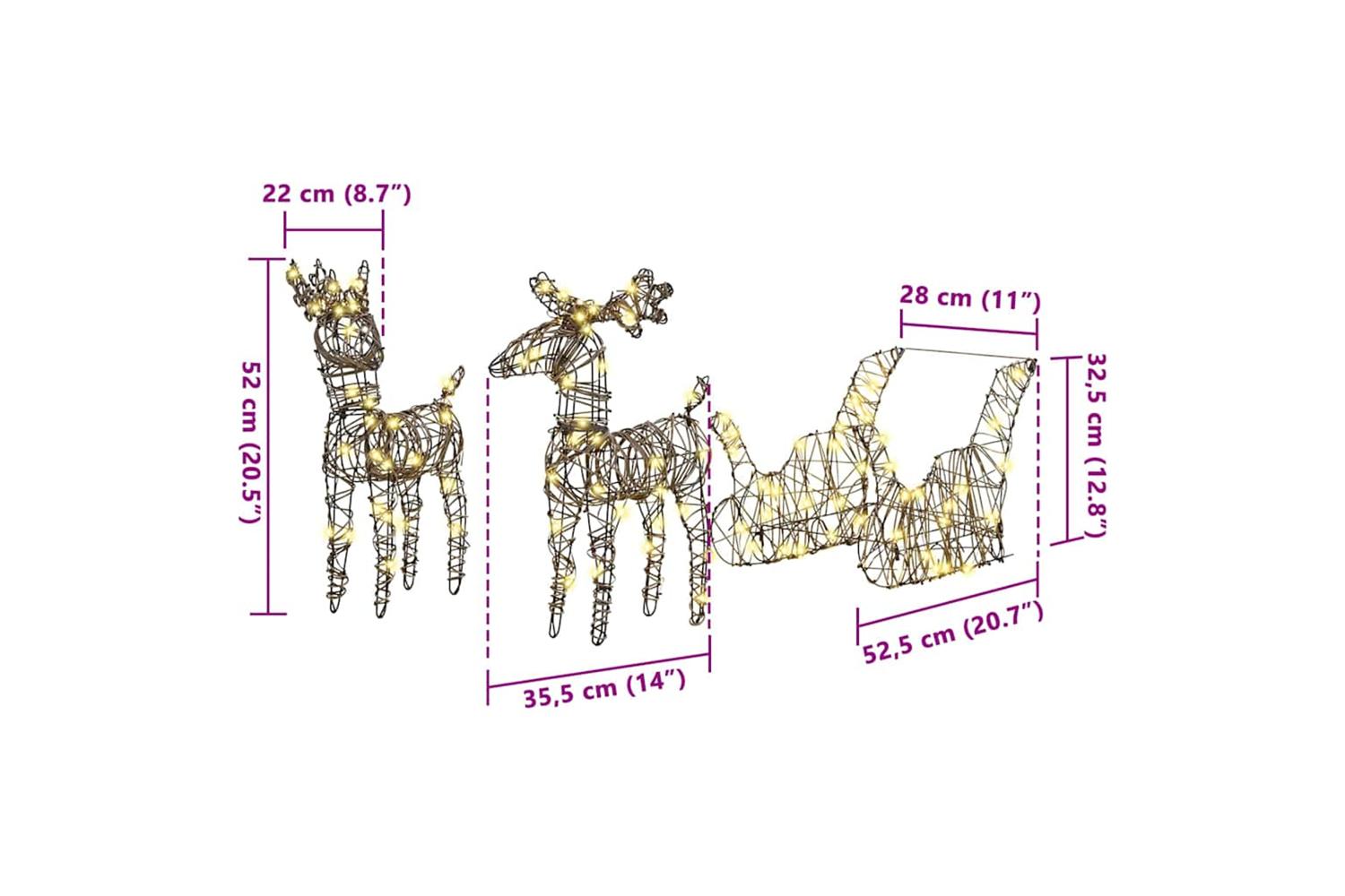 This Reindeer Pull Sleigh Christmas décor piece is the perfect addition to any holiday setup, epitomizing modern elegance with its clean lines and minimalistic style. Crafted with premium materials, it's visually captivating and designed to fit seamlessly into both living rooms and garden terraces, with warm white tones adding an enchanting touch to seasonal decor. Its impressive size makes it a standout feature, while still accommodating versatile placement options indoors or outdoors, marrying classic reindeer imagery with contemporary styling.
