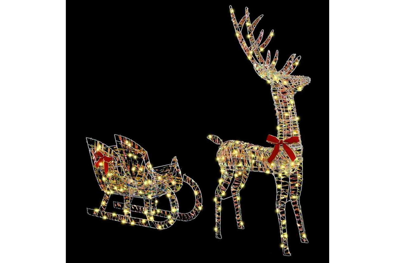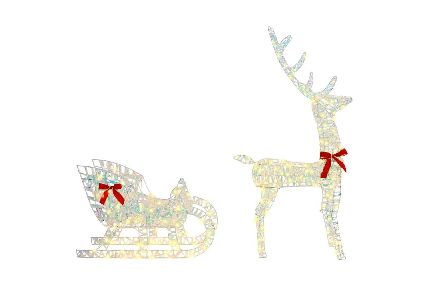 This Reindeer Pull Sleigh is the perfect addition to any holiday setting, combining modern aesthetics with timeless festive charm. Designed for those who cherish the Christmas spirit, this eye-catching decorative piece adds character and warmth to any space, whether placed in a living room, hall, or garden. Featuring a charming reindeer pulling a sleigh, it perfectly encapsulates the joy and wonder of the holiday season. Adorned with warm white LED lights, this decoration casts a serene glow, harmonizing beautifully in both indoor and outdoor environments, showcasing sophistication and festive elegance. Crafted to complement various holiday themes, its sleek, modern style respects the essence of traditional festivity while providing a contemporary twist.