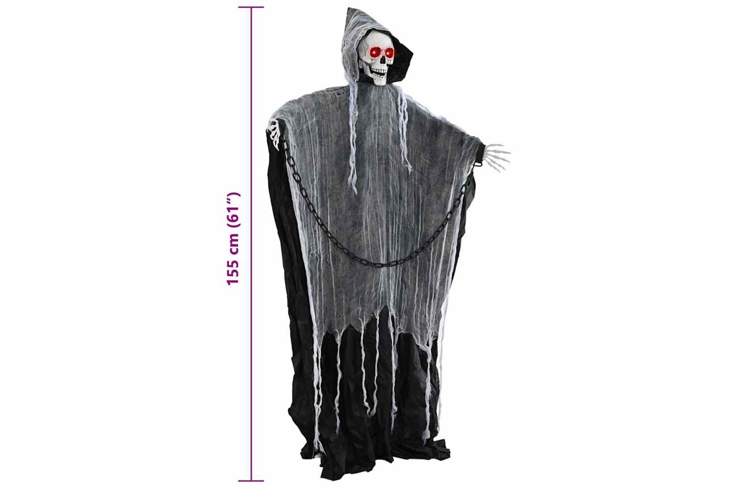 This Halloween Grim Reaper is an eye-catching decoration that's just perfect for giving your home a spooky twist. Great for gatherings with friends and family, it mixes gothic designs to create an eerie vibe. Its large form and bright details make it a brilliant focal point in any living room, catching everyone's eye. The reaper's adjustable arms and motion-activated sounds add an interactive touch, giving guests unexpected thrills.
