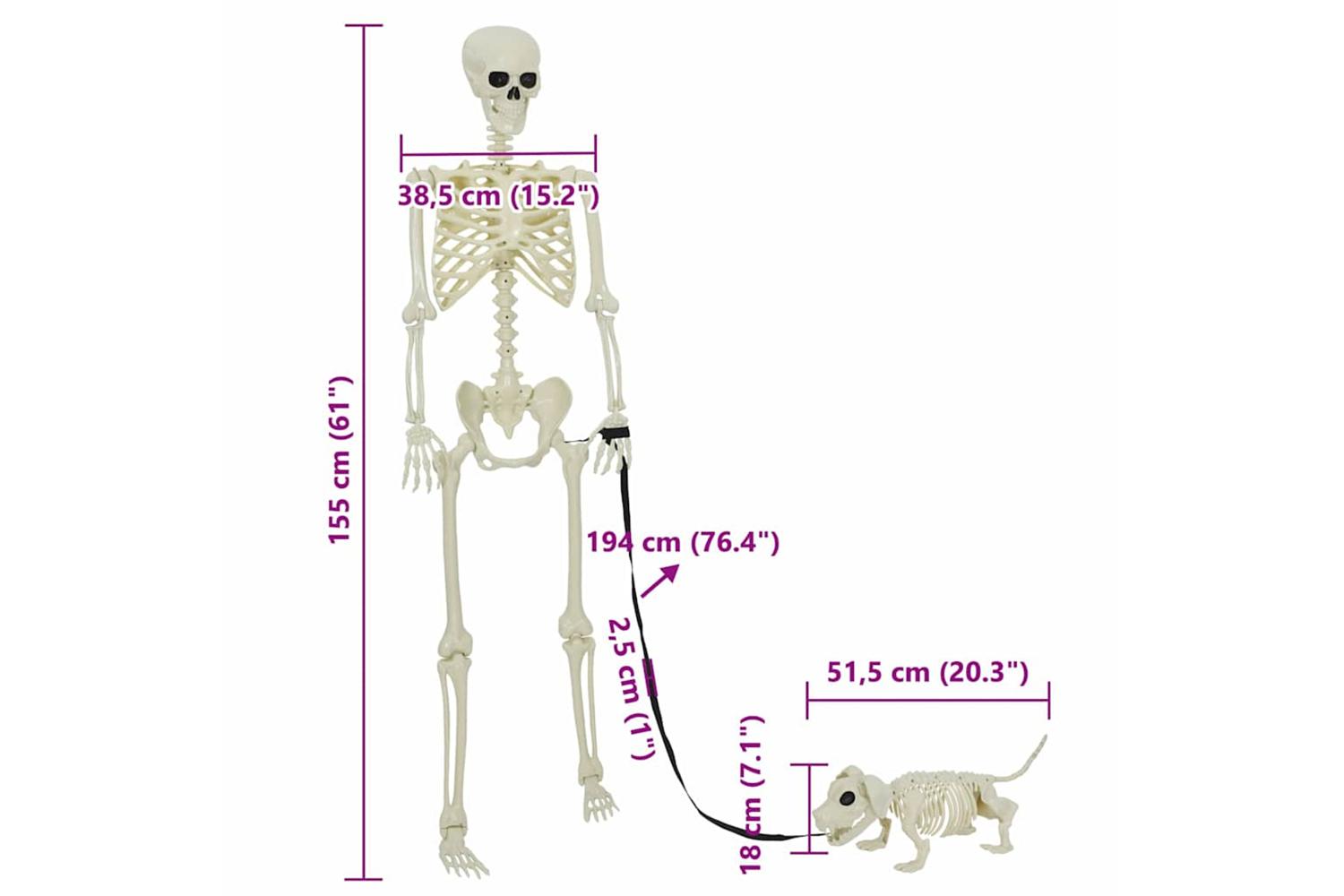 - Components Included: The package contains a life-sized skeleton and a dog skeleton, providing a complete set for a full-themed ensemble. Each component can stand on its own, allowing for creative versatility during setup, enhancing the eerie ambiance of any environment.
