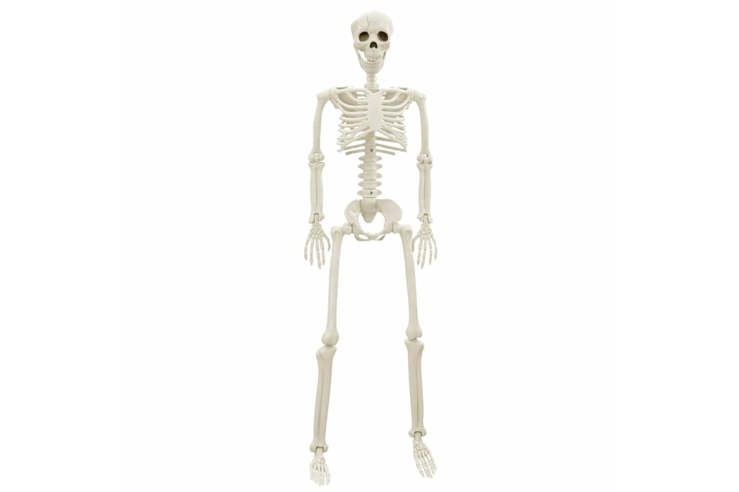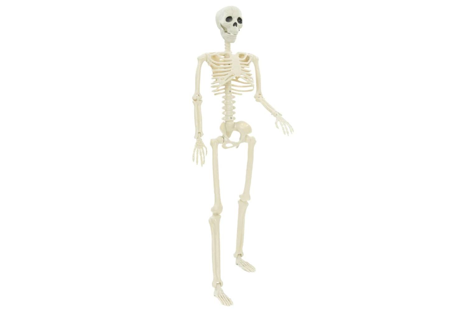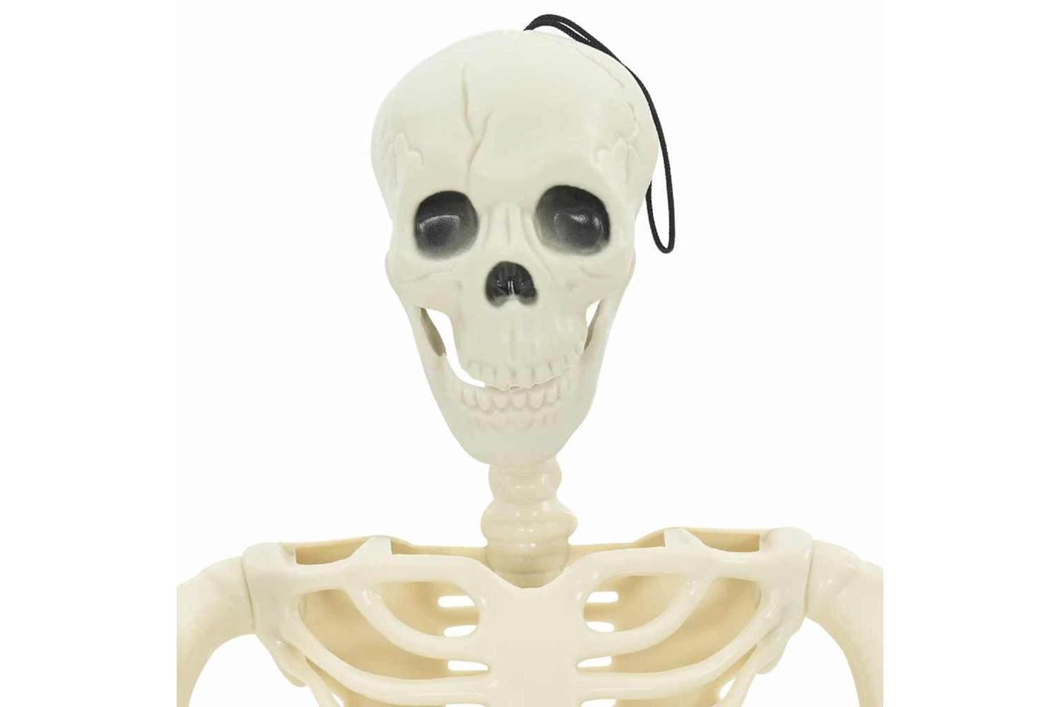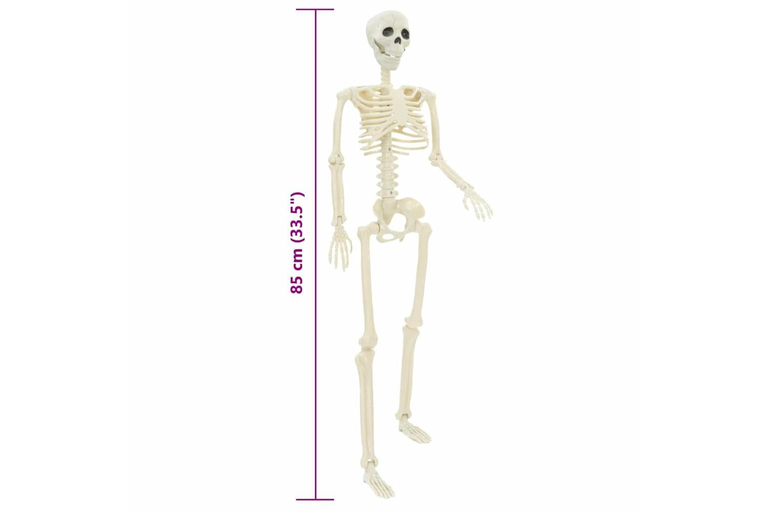 This lifelike Halloween Skeleton stands as a captivating gothic inclusion suitable for any Halloween ensemble. With its imposing 85 cm stature, its stark white finish casts an ominous shadow worthy of your front porch or living room. Possessing adaptable joints and a convenient string on top, it adds a freakishly fine detail to your spooky seasonal décor.