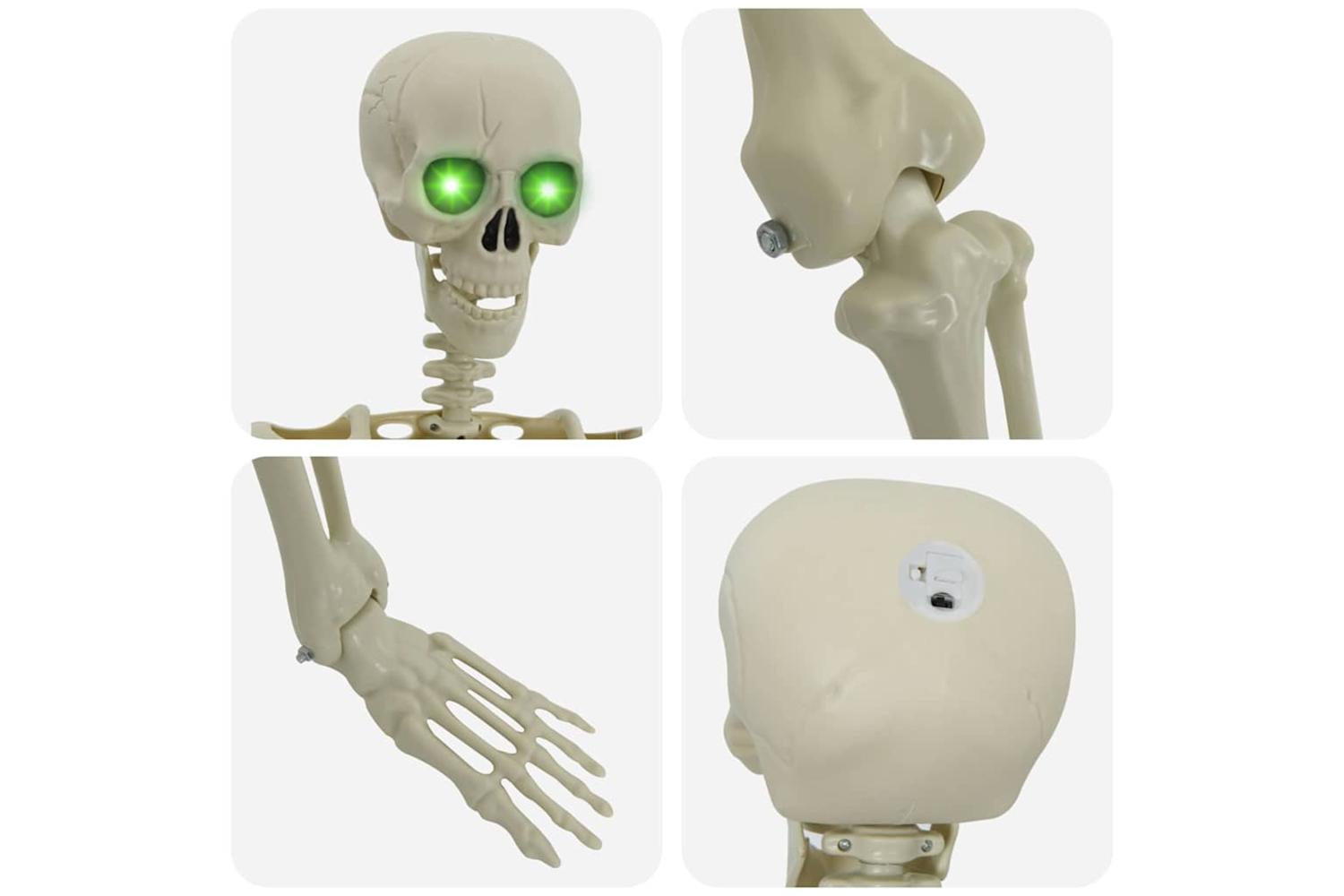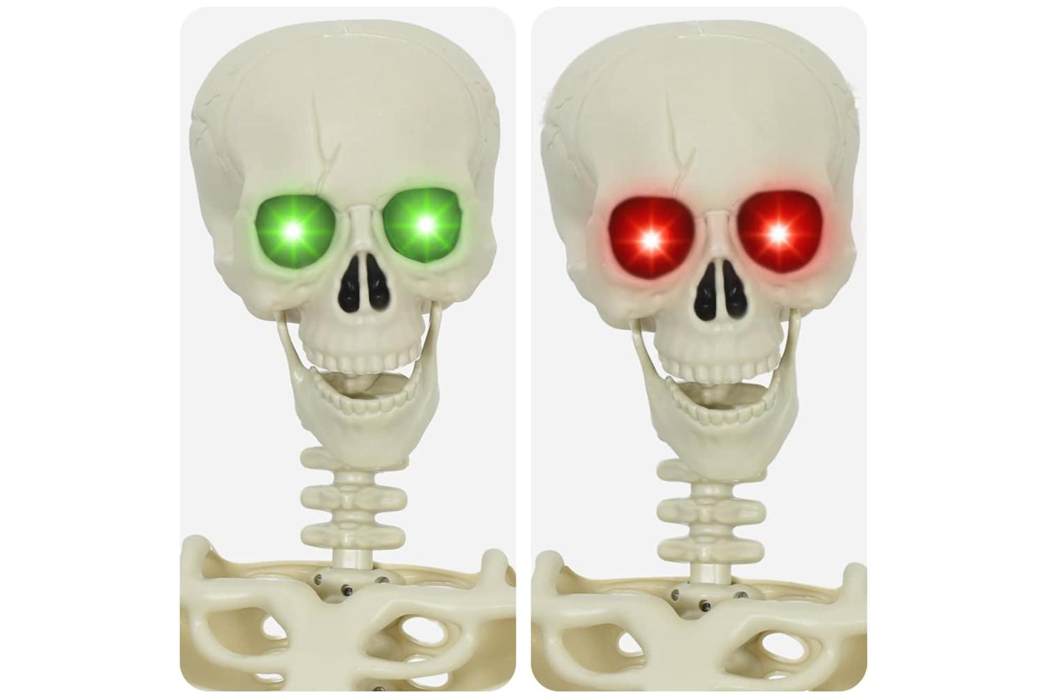 - Bright LED String Lights: With LED string lights in creepy red and green shades, the skeleton gives off an otherworldly glow that boosts its haunt factor. Use it to highlight dark corners or as a showpiece to liven up your Halloween setup.