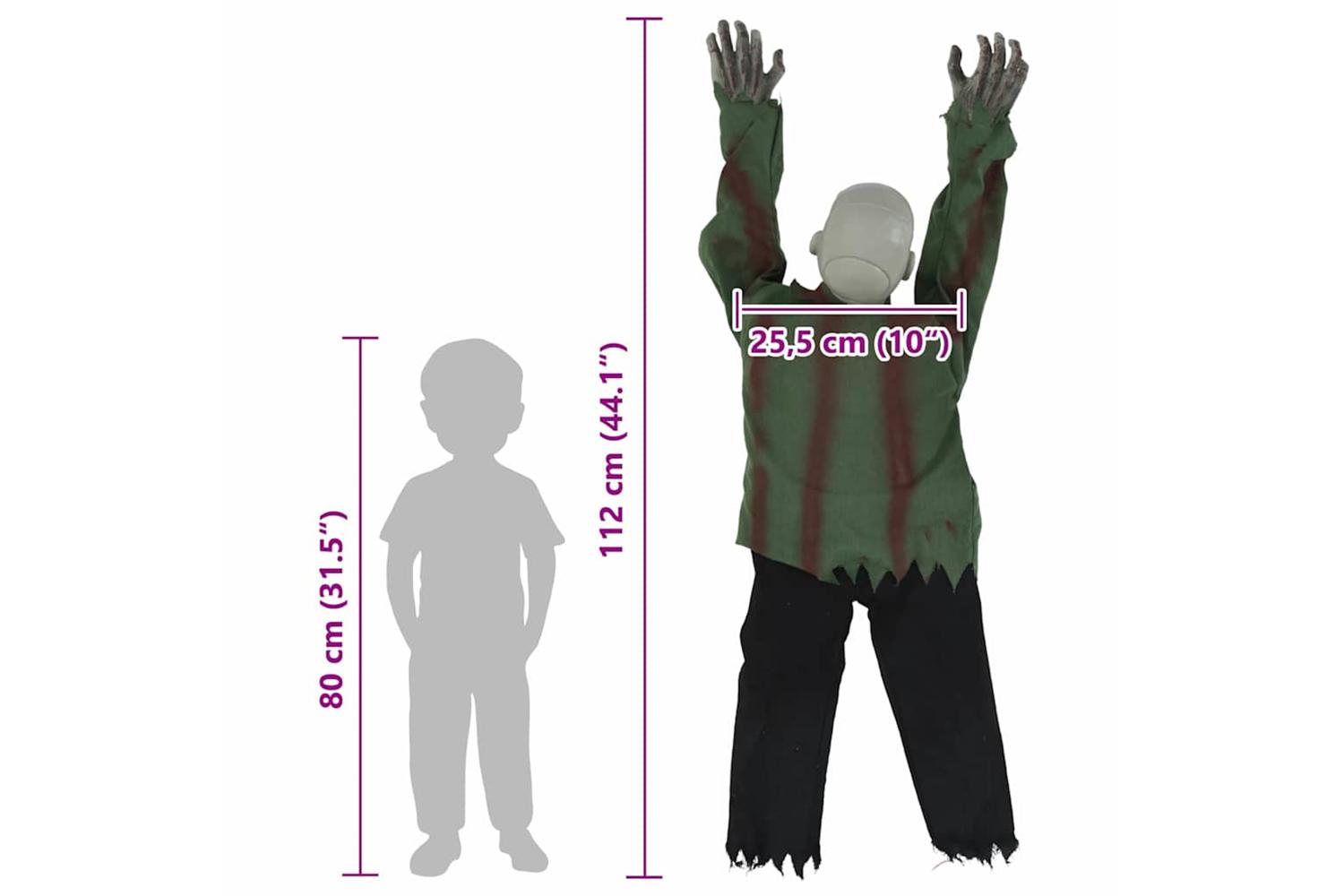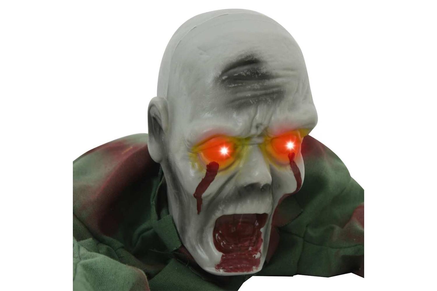 - Sensor-activated within 50 cm, the zombie crawls and emits scary sounds.