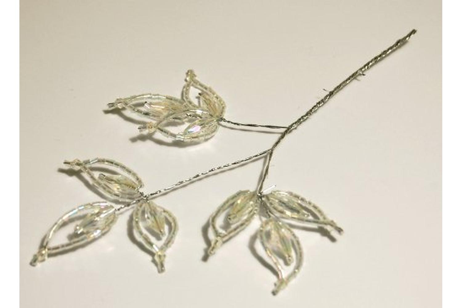 Description: Irridiscent Beaded Flower Spray on Silver Wire