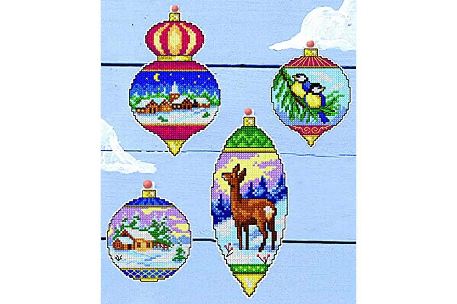4 Counted cross stitch Christmas decorations.