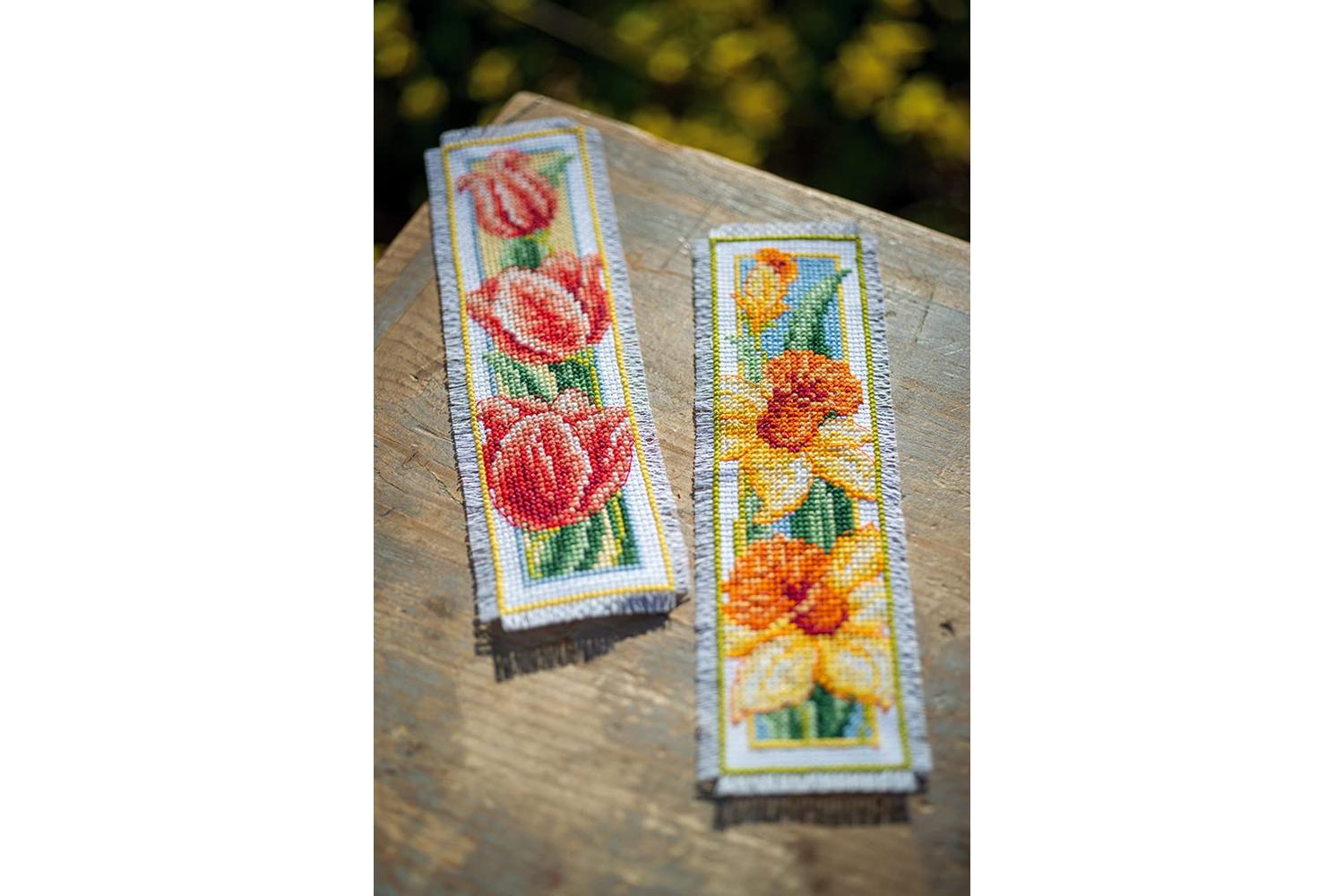 Description: Set of 2 counted cross stitch bookmarks. Kit includes: