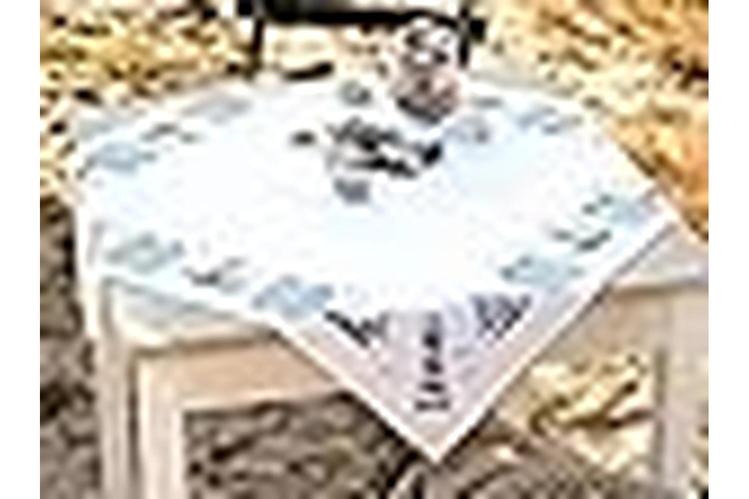 Tablecloth with cross stitched design.