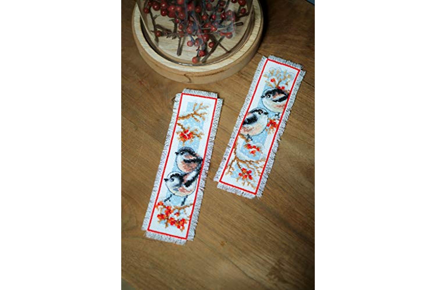 Description: Set of 2 bookmarks with counted cross stitch designs.