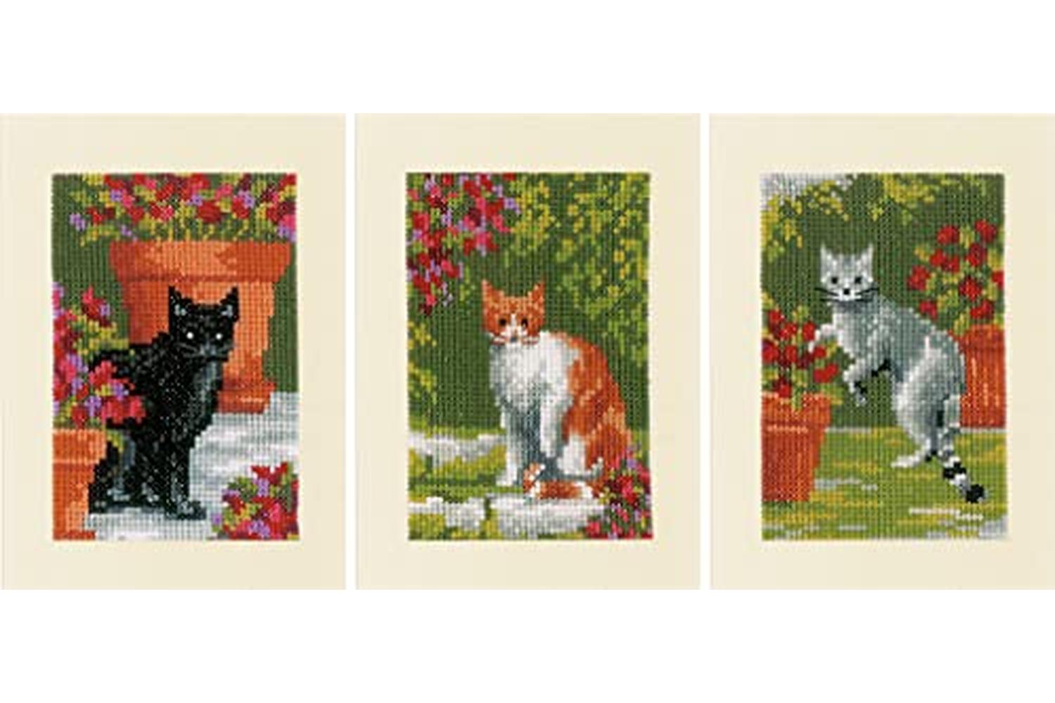 Vervaco Gro-pn-0188672 - Cards Pk3 Catflwrs - Counted Cross