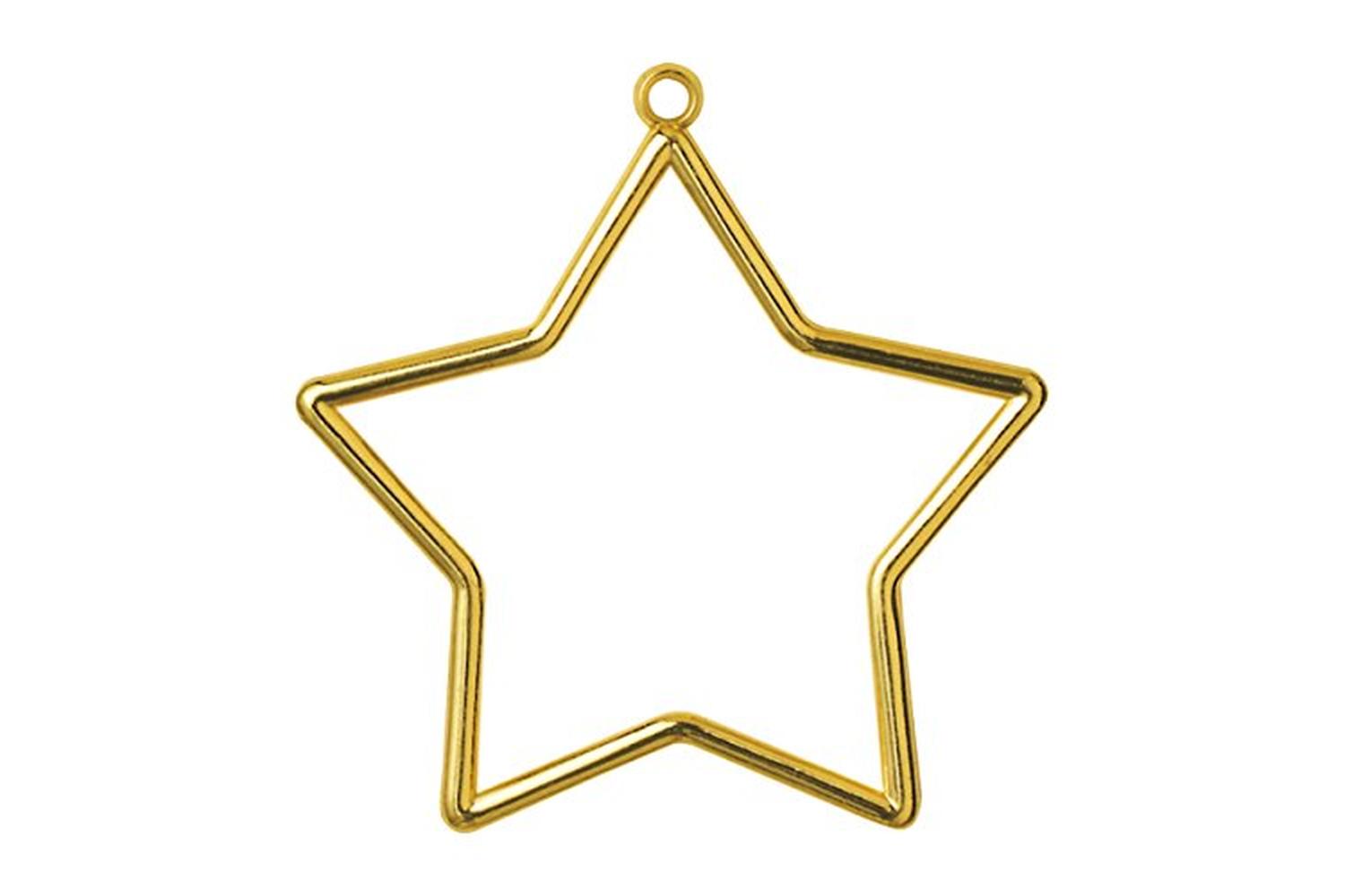 Star shaped, gold effect plastic frame to display needlecraft pieces.