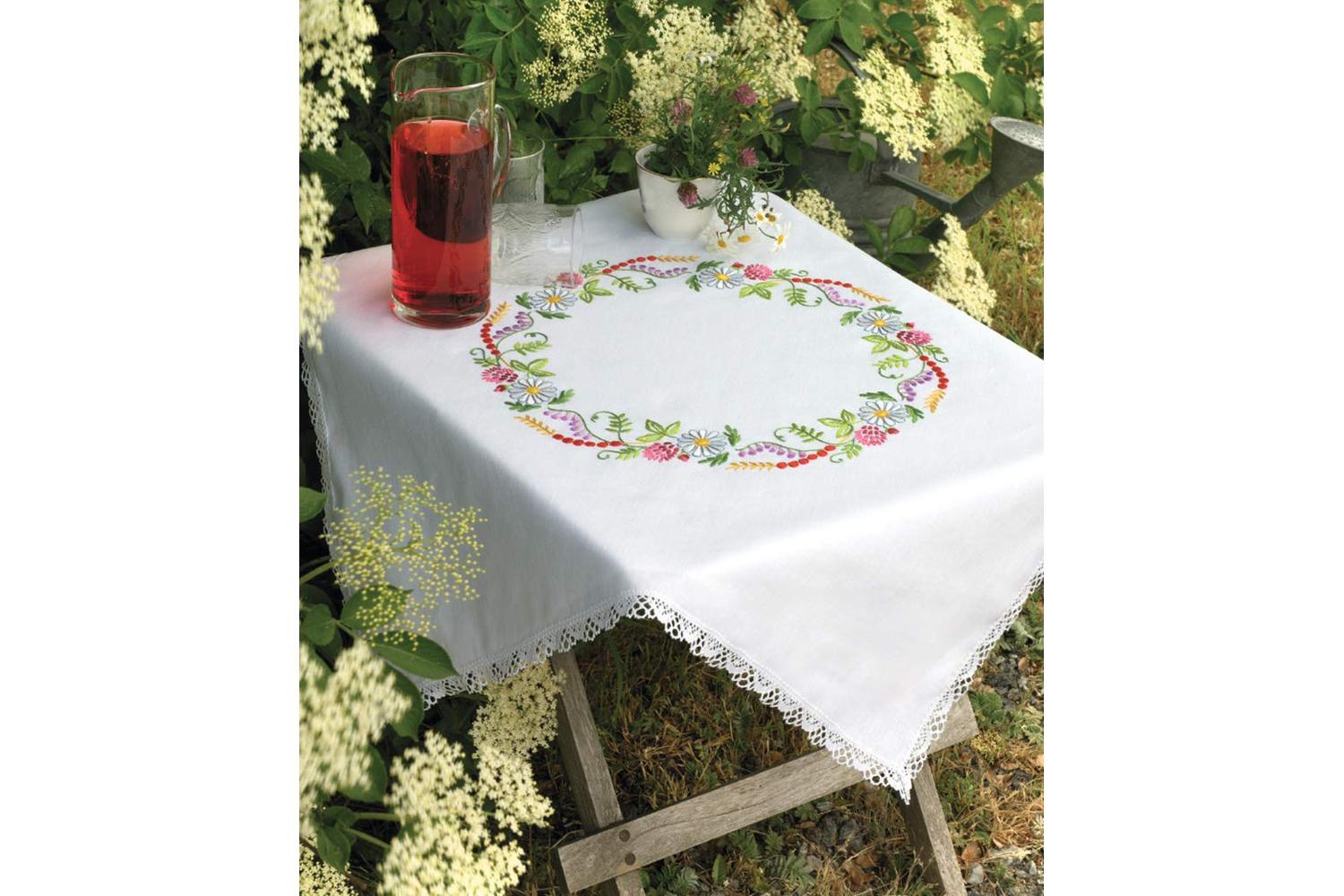 Description: Printed design to be stitched with Anchor Stranded Cotton onto white, linen fabric with unhemmed edge. Kit also includes: needle, front sheet picture and instructions in 12 languages (ENG, FR, NL, ES, NO, DK, SV, RU, FI, PT, IT, DE). Approximate finished size: (w/h) 65 x 65cm or 26 x 26in. Skill level 3. Dry clean only.