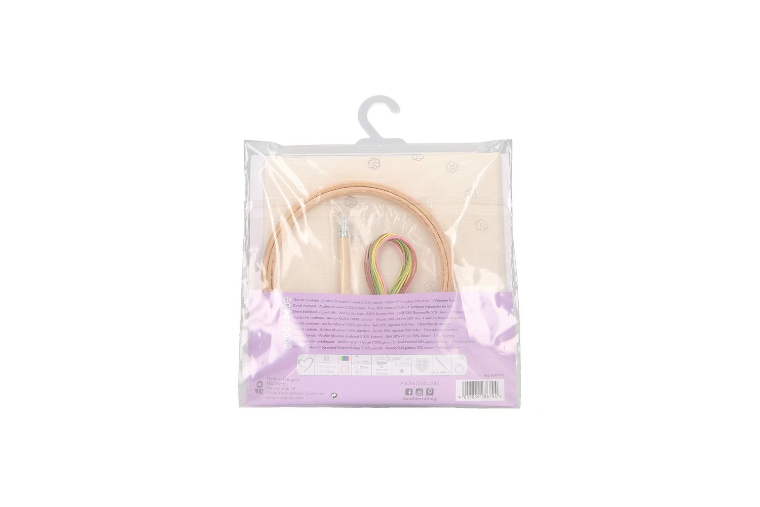 The Anchor Hoop Collection is designed for young adults that want to express their creativity and want to get involved with hand embroidery. This collection of easy-to-stitch free-style embroidery is a perfect piece for a beginner or stitcher who simply loves to stitch. The end result is a unique and personalised piece.