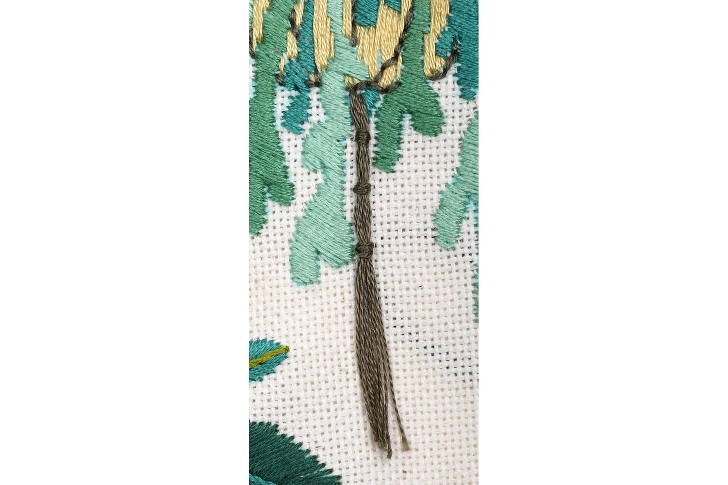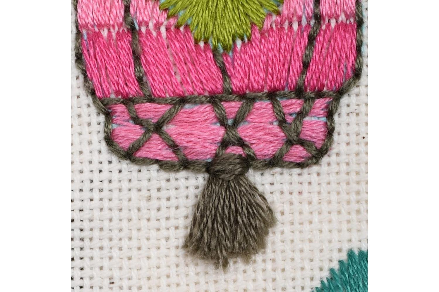 Approximate finished size: (diam) 20cm or 8in. Age category: from 18 years. Difficulty level: difficult. Stitches used: French knot, satin stitch, stem stitch, back stitch.