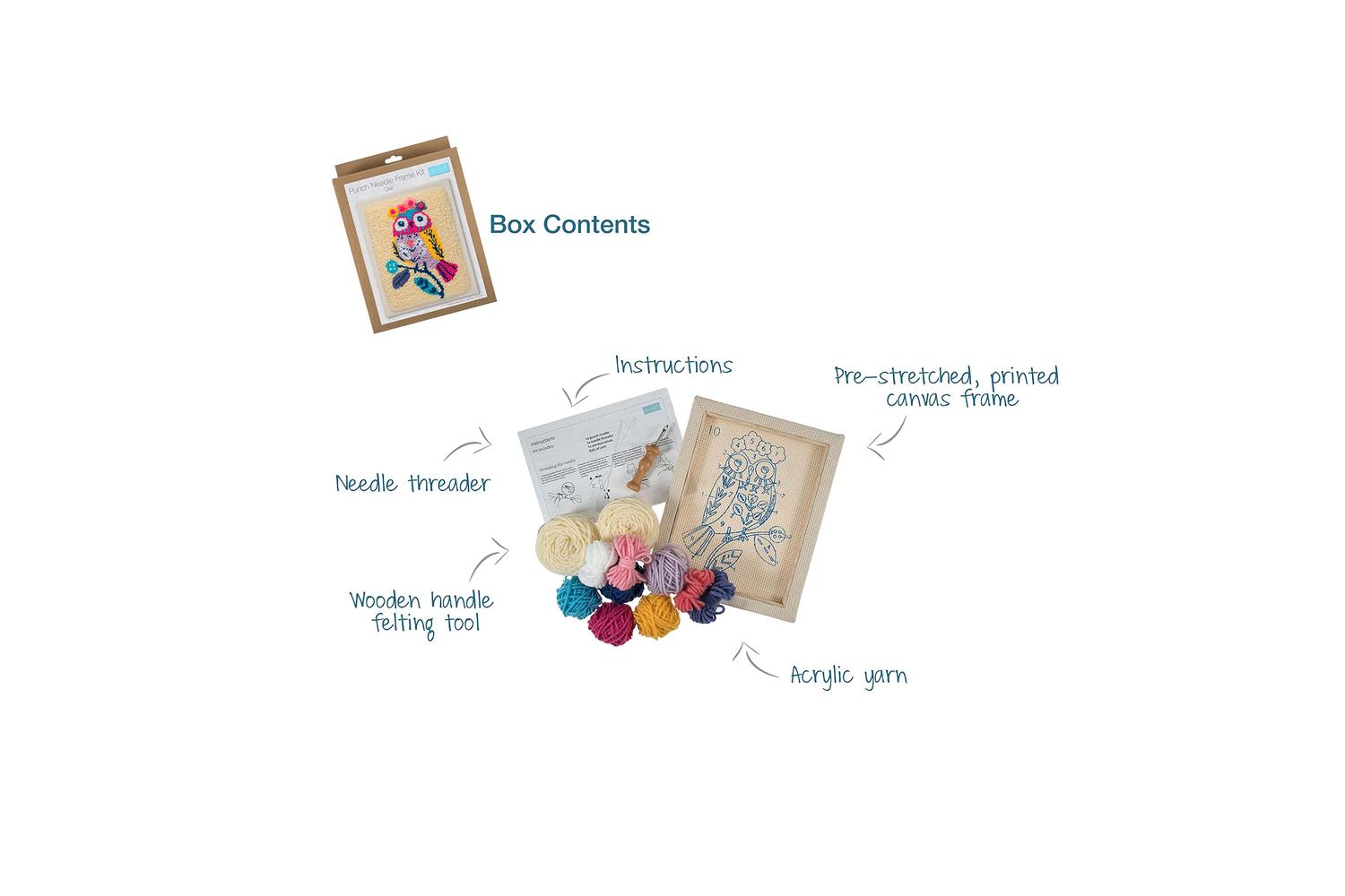 Description: Punch needle kit. These punch needle frame kits are the perfect introduction to the art of needle punching and would make a perfect home decoration or a unique gift.