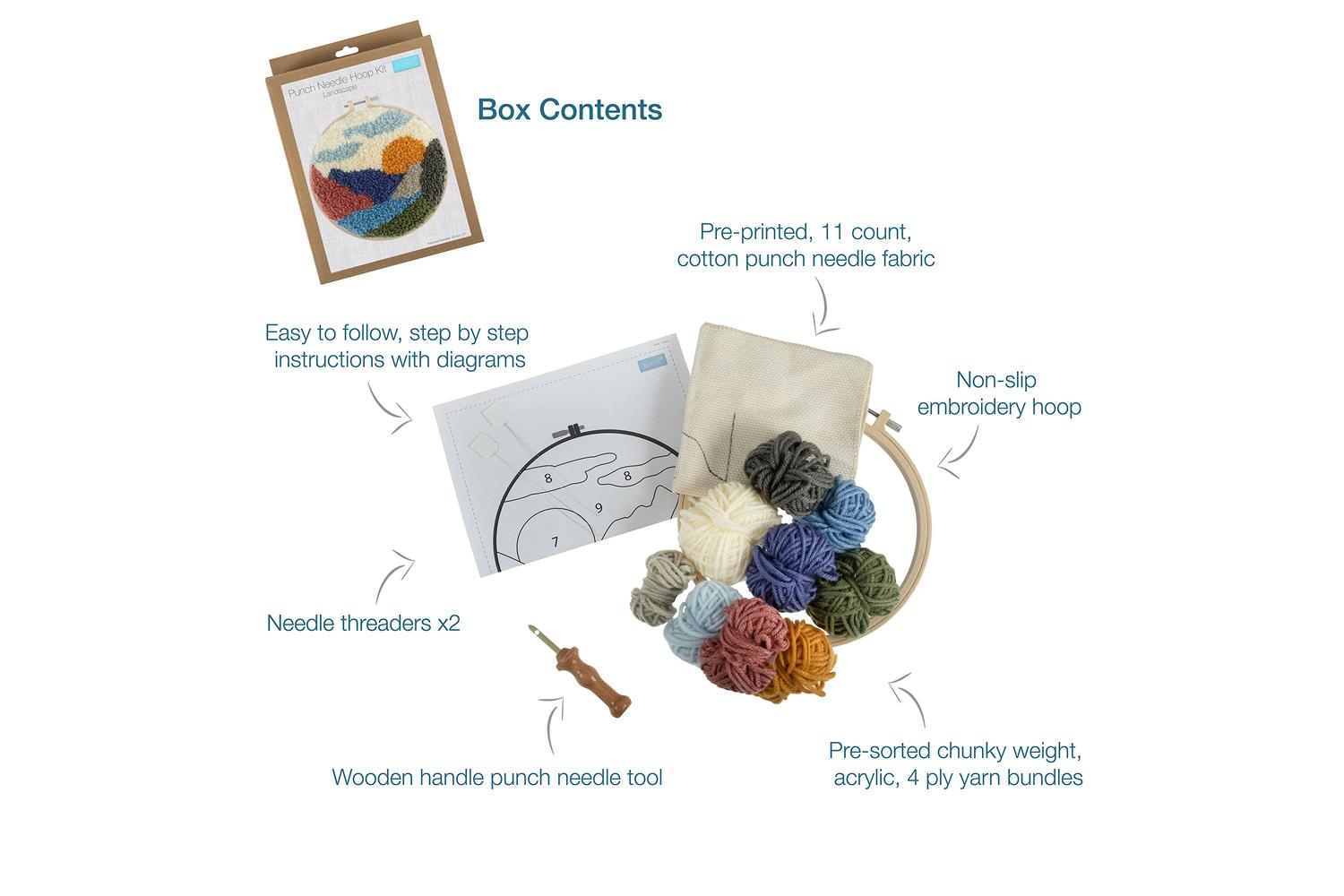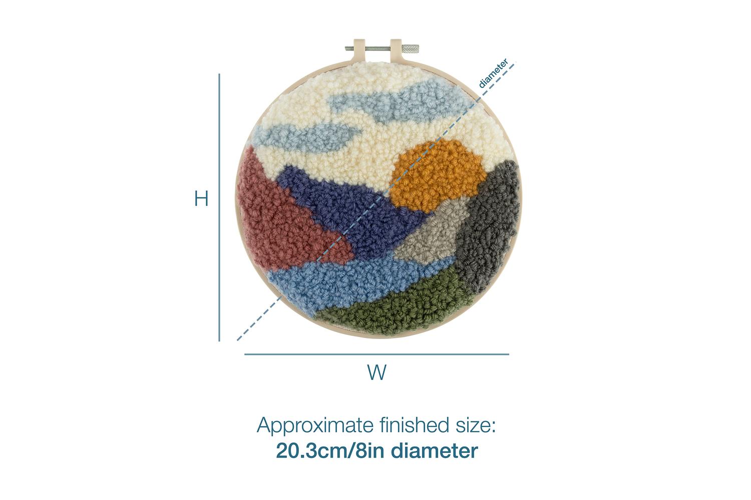 Description: Punch needle kit. These punch needle hoop kits are the perfect introduction to the art of needle punching and would make a perfect home decoration or a unique gift.