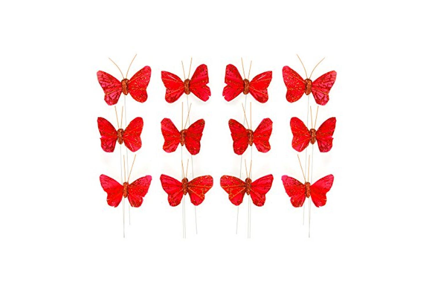 Butterflies: Glitter: 5cm: Pack of 12: Red