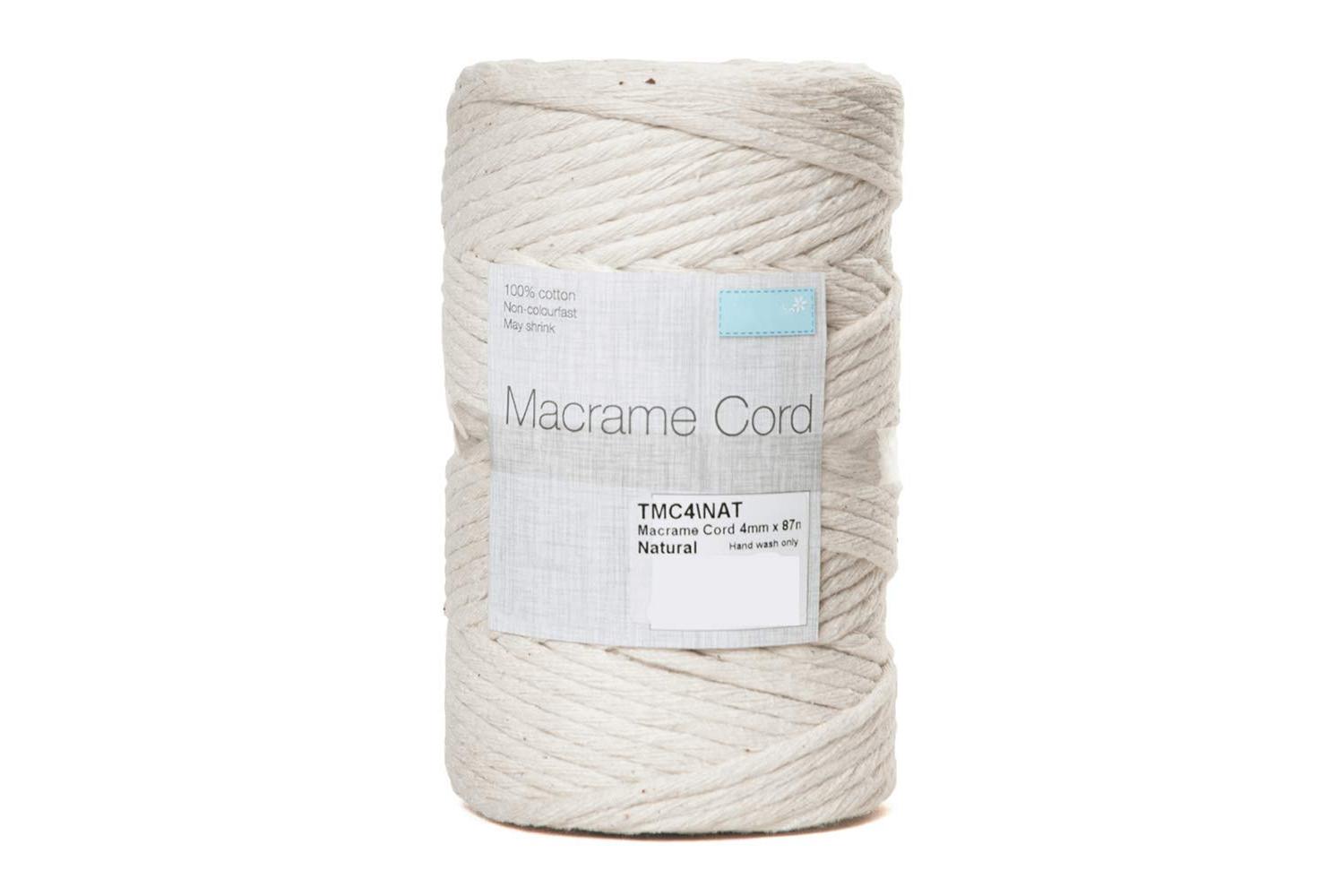 Description: Natural macramé cord, perfect for a range of projects such as wall hangings, decorations, home décor, key chains or jewellery. Sold on spools. Made from 100% cotton. May shrink when washed. Handwash only. Not colour fast.