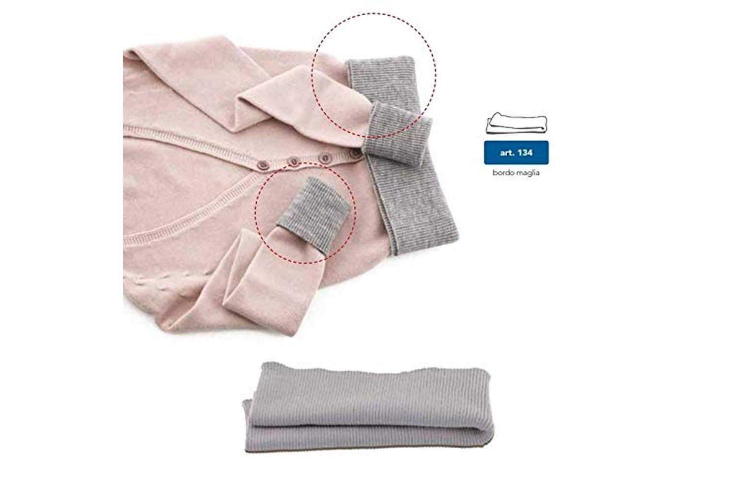 Acrylic borders are produced to repair or renew winter garments by replacing the waistband. They come pre-shaped, folded with a height of 8cm and a length of 80cm. The composition is 80% acrylic and 20% wool.
