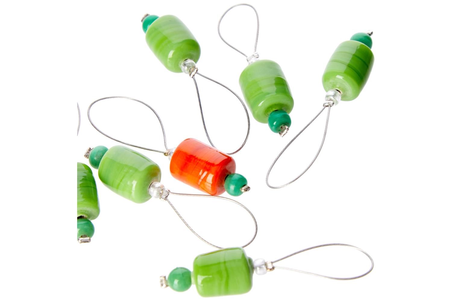 Set of 7 beaded stitch markers. Ideal tool to mark the end of a row in circular knitting or to mark the row at a specified place.
