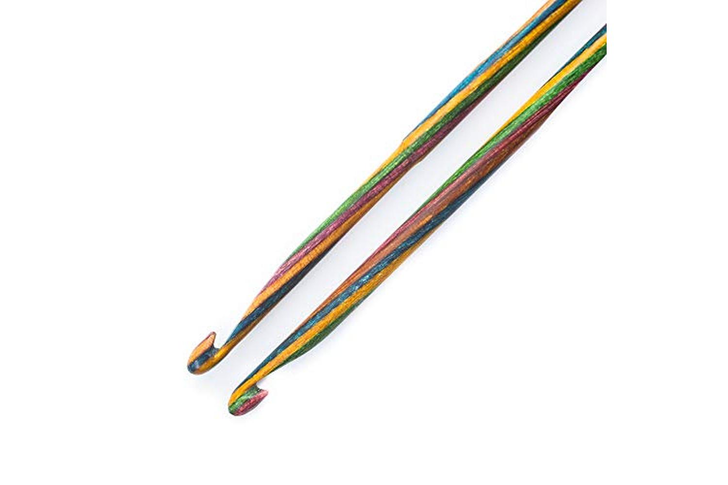 These multi-coloured Symfonie hooks are made of dense laminated Birchwood combines the simplicity of crochet with the look of knitting, producing a distinctive woven finish. Smooth, light weight and easy to use. Length: 15cm.
