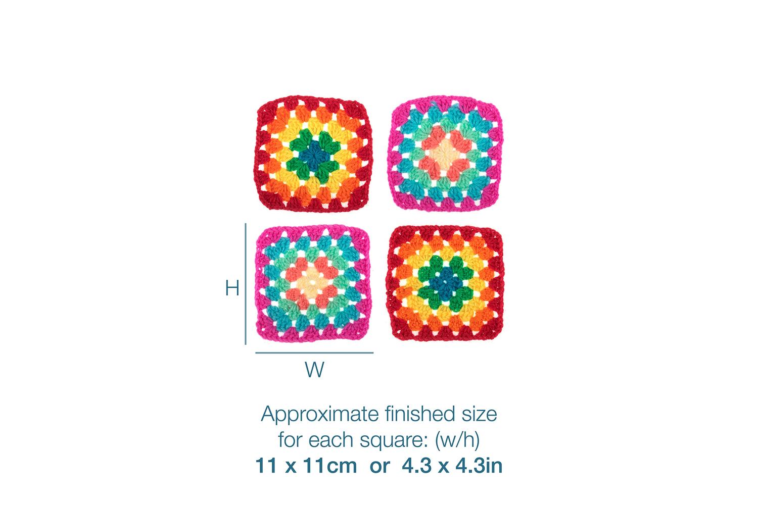 Each finished crochet square measures approximately: (w/h) 11 x 11cm.