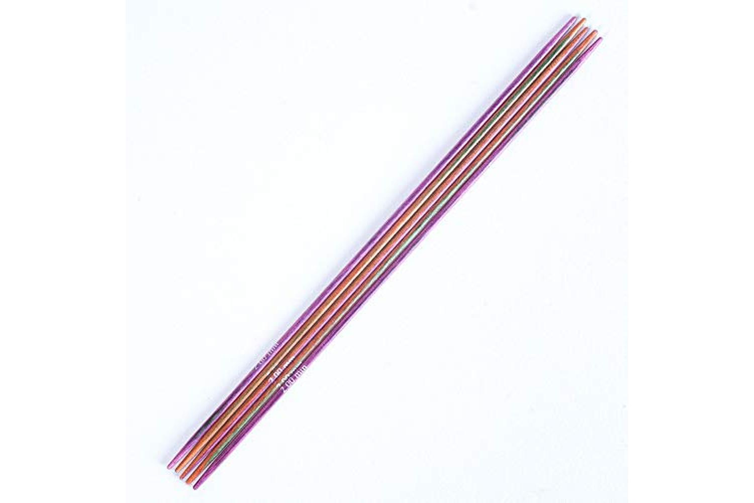 Description: These popular multi-coloured needles are made from compact laminated Birchwood and provide a strong and durable finish. The smooth and sharp tapered tips are ideal for creating tubes of knitting such as socks, gloves, hats, and scarves etc. Set of 5.
