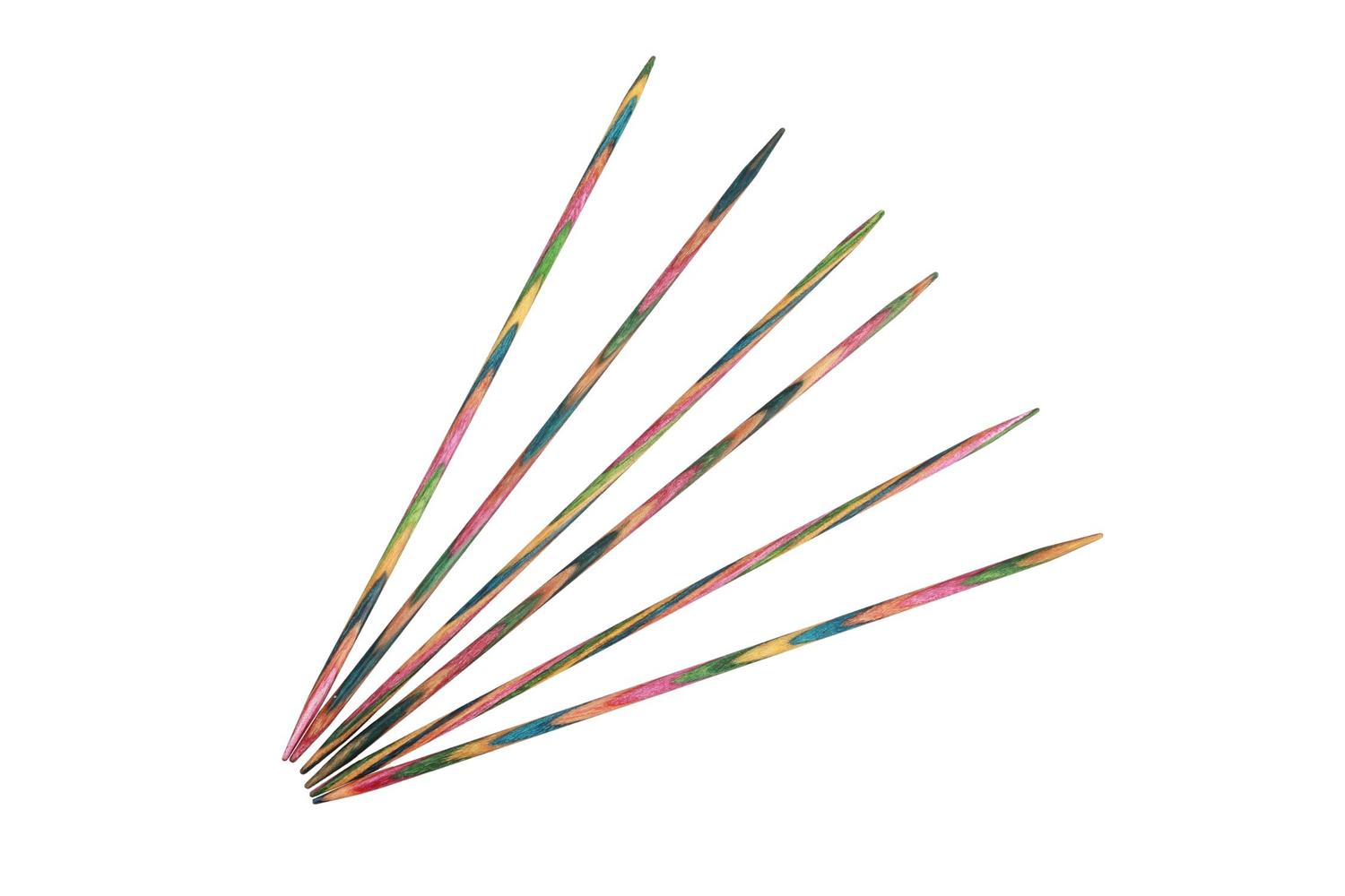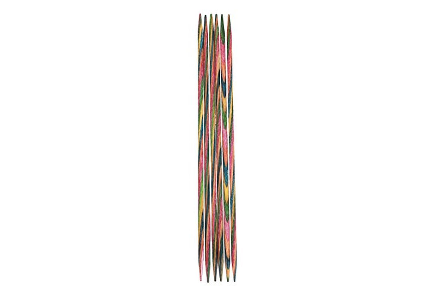 Description: These popular multi-coloured needles are made from compact laminated Birchwood and provide a strong and durable finish. The smooth and sharp tapered tips are ideal for creating tubes of knitting such as socks, gloves, hats, and scarves etc. Set of 5.