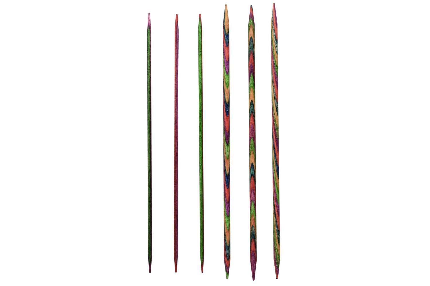 Description: These popular multi-coloured needles are made from compact laminated Birchwood and provide a strong and durable finish. The smooth and sharp tapered tips are ideal for creating tubes of knitting such as socks, gloves, hats, and scarves etc. Set of 5.