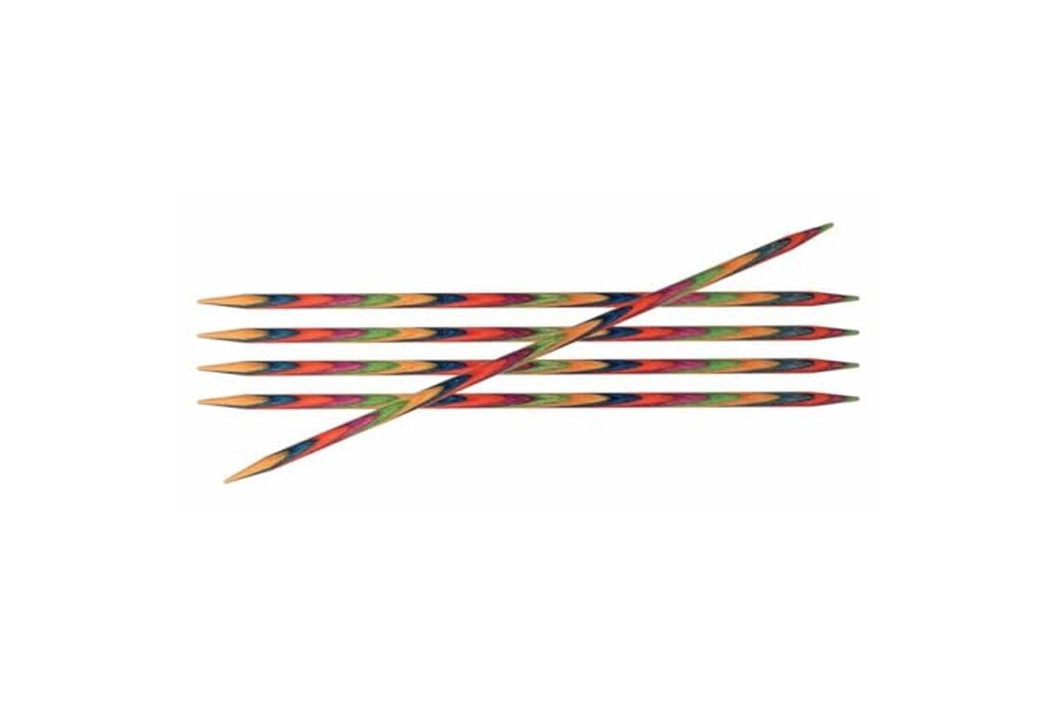 Description: These popular multi-coloured needles are made from compact laminated Birchwood and provide a strong and durable finish. The smooth and sharp tapered tips are ideal for creating tubes of knitting such as socks, gloves, hats and scarves etc. Set of 5.