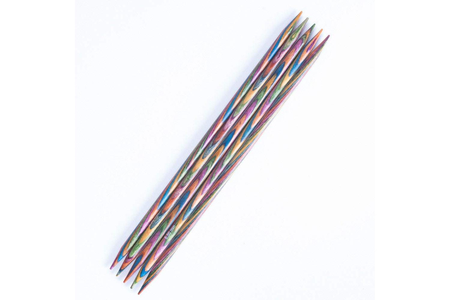 Description: These popular multi-coloured needles are made from compact laminated Birchwood and provide a strong and durable finish. The smooth and sharp tapered tips are ideal for creating tubes of knitting such as socks, gloves, hats, and scarves etc. Set of 5.