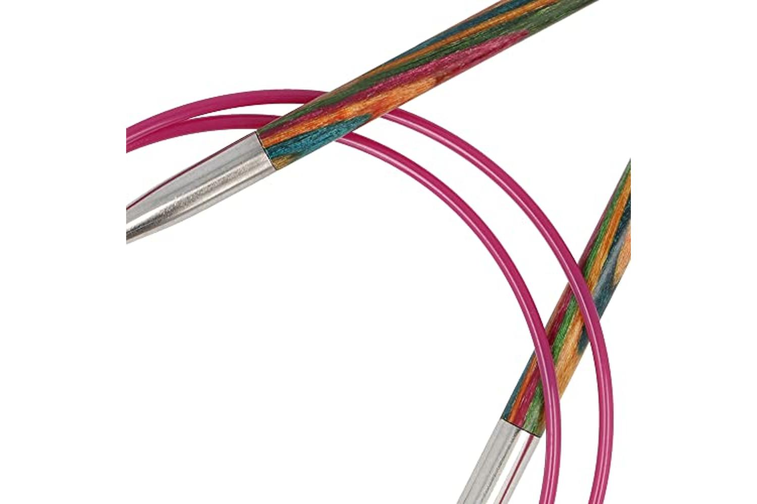 Description: These popular multi-coloured needles are made from compact laminated Birchwood and provide a strong and durable finish. Smooth join, with a snag-free cable to carry the bulk of the weight.