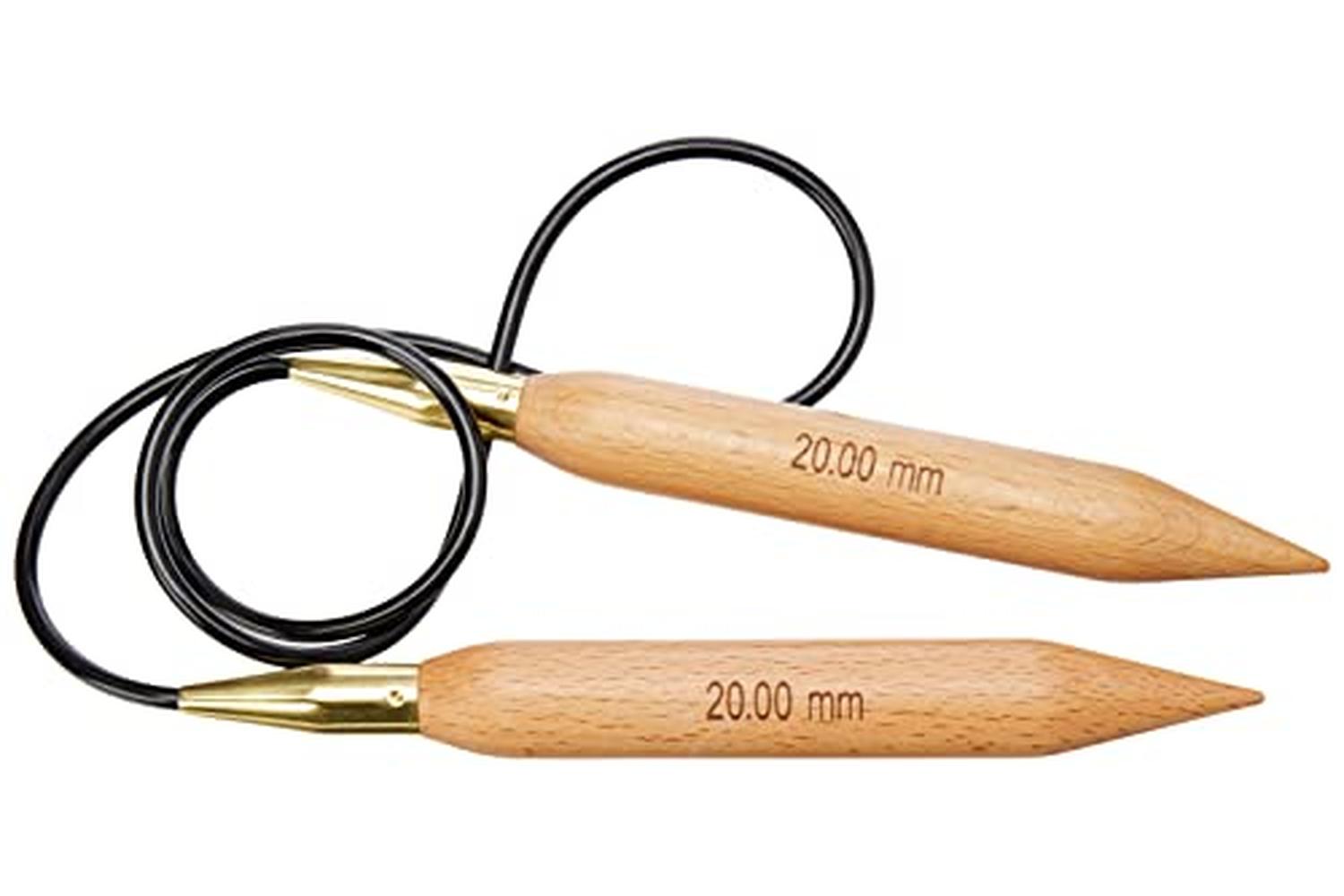 Made from birch, these Jumbo circular needles are lightweight and elegant, for easy use. Used to produce seamless garments without stress on hands and wrists. The attached cable carries the bulk of the weight.