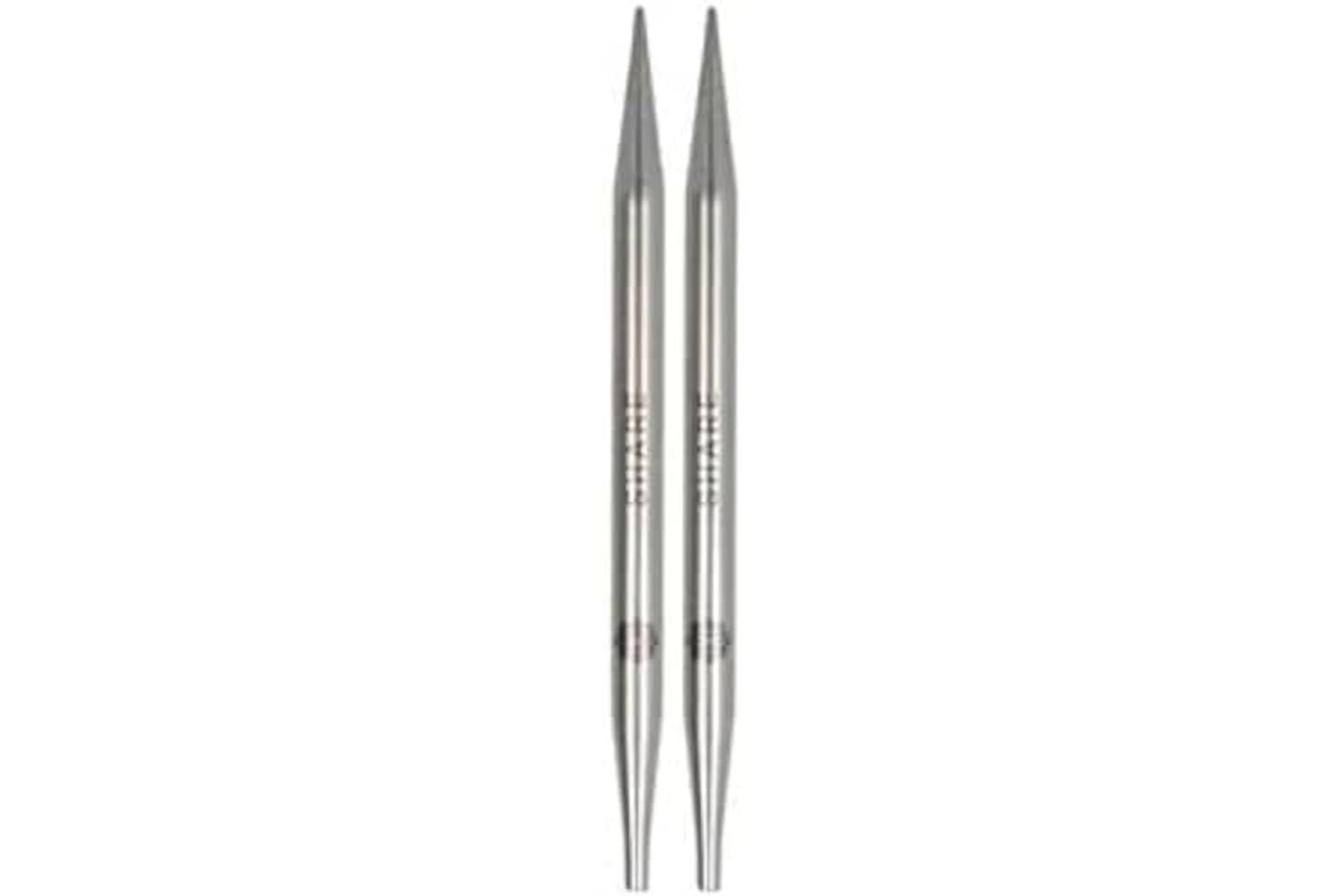 Interchangeable circular knitting pin made from stainless steel which is durable, environmental friendly and recyclable. Inspirational words printed on each needle to enhance calmness and mindfulness. These needles have the advantage of a swivel top rotary mechanism, which ensures easy turning with no annoying twisting of the cable. (Cables available separately). Environmentally friendly packaging, using natural materials.