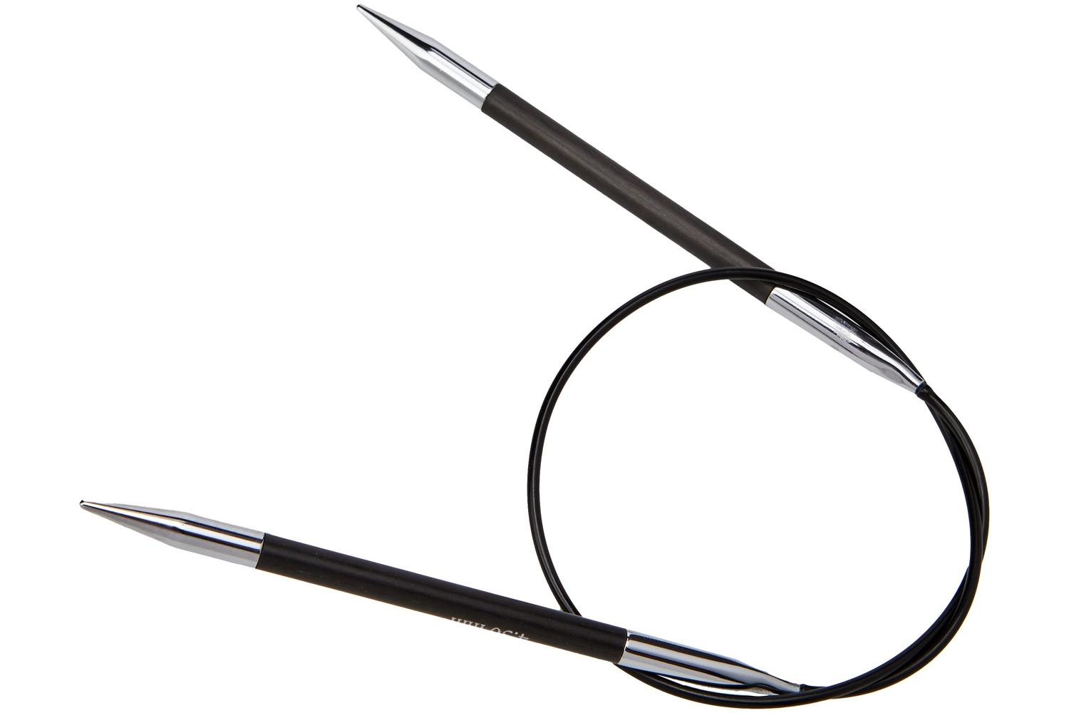 Lightweight carbon fibre circular needles, with a high tensile strength and brass tapered tips, ideal for creating seamless garments ergonomically. The resilient and flexible cable provides a snag free smooth join to carry the bulk of the weight.