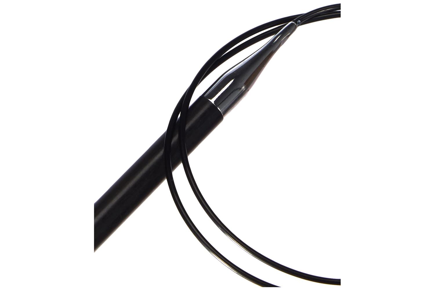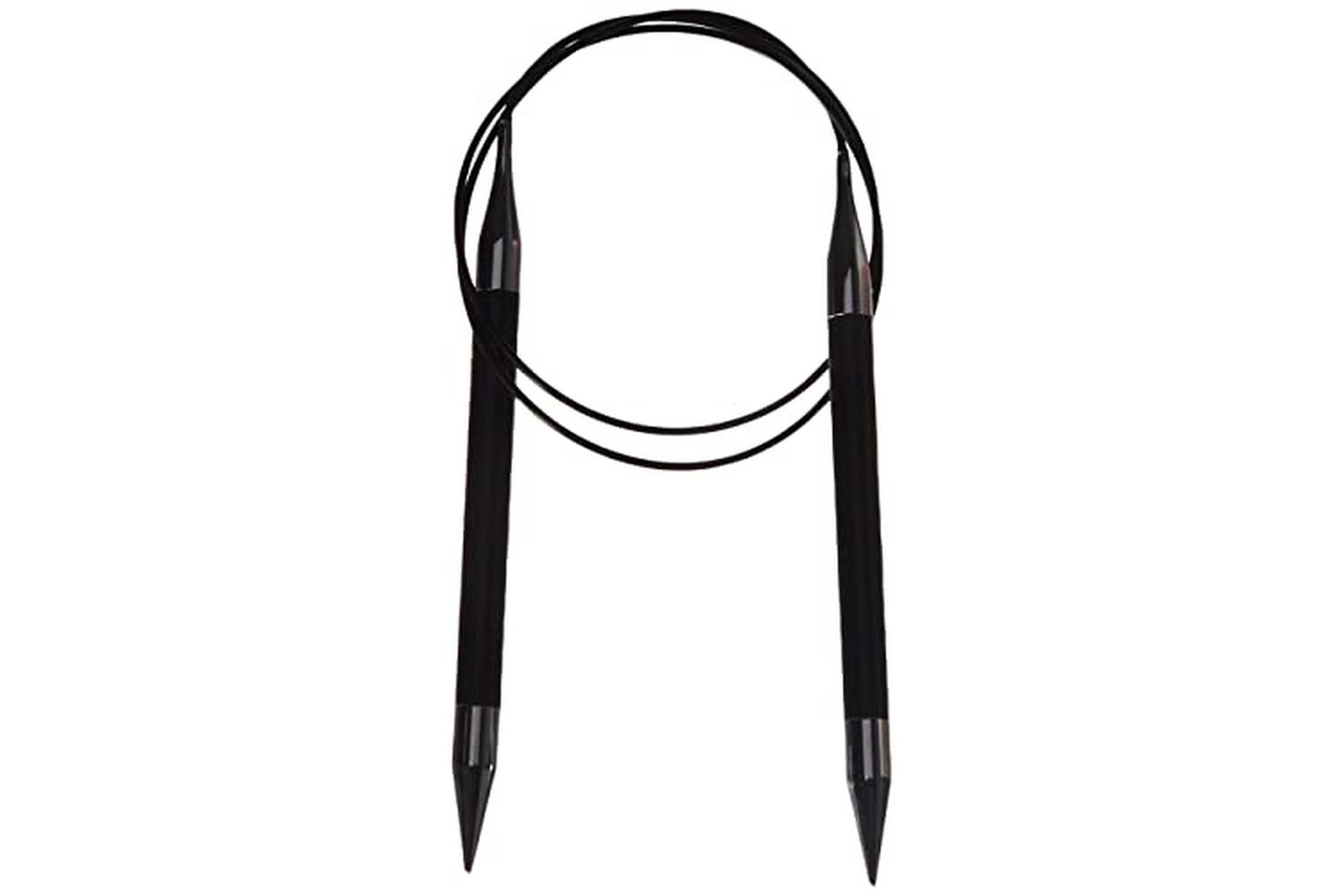 Lightweight carbon fibre circular needles, with high tensile strength and brass tapered tips. Ideal for creating seamless garments ergonomically. The resilient and flexible cable provides a snag-free smooth join to carry the bulk of the weight.