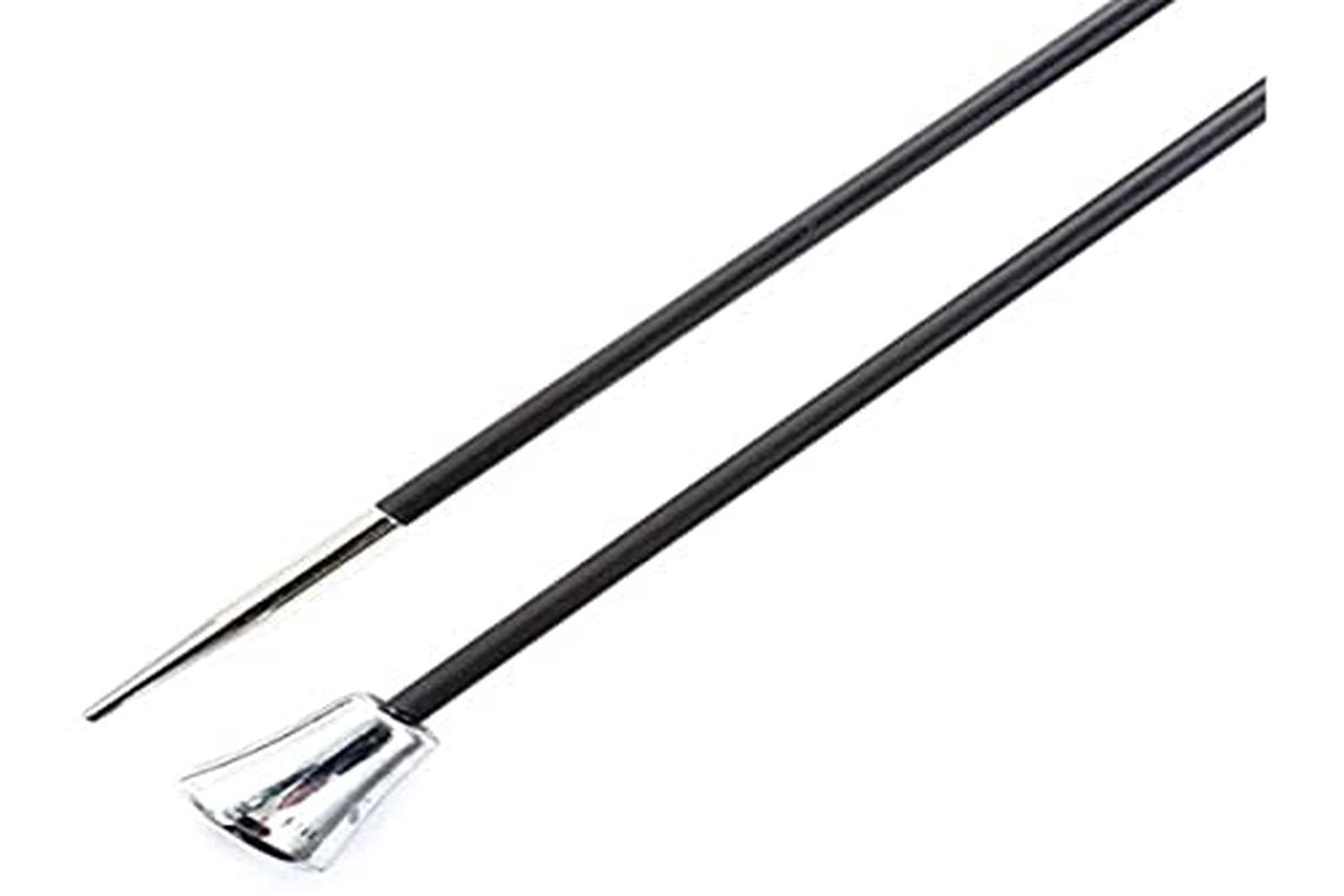 Description: These needles are made from carbon fibre - making them lightweight and flexible, with a high tensile strength. The brass tapered tips make them ideal to use with any kind of yarn to create versatile knitting projects.