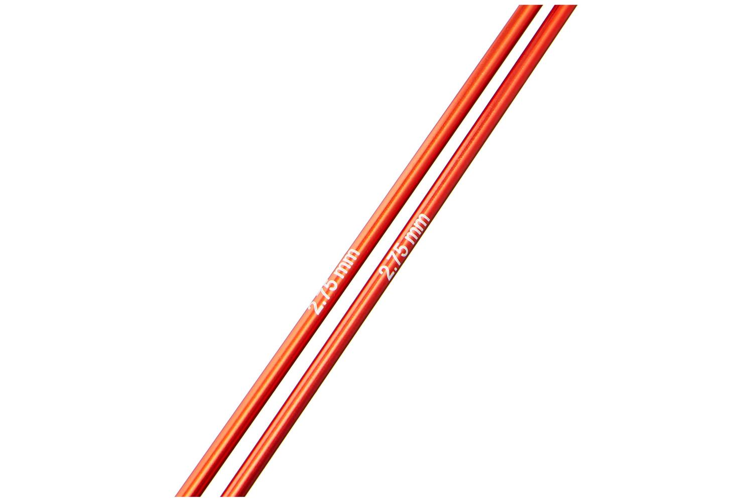 Description: Aluminium knitting pins in a spectrum of bright and lively colours with beautiful silver tips. The lustrous metallic shades are specific to different sizes.