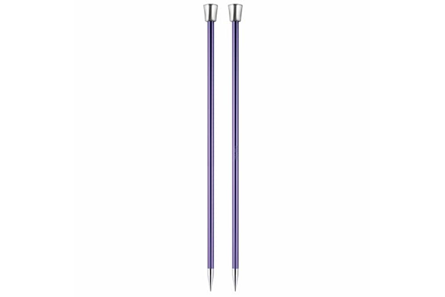 Description: Aluminium knitting pins in a spectrum of bright and lively colours with beautiful silver tips. The lustrous metallic shades are specific to different sizes.