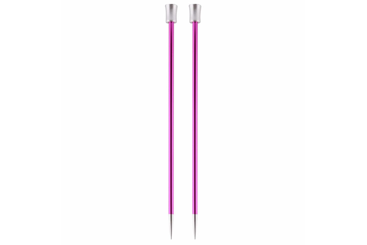Aluminium knitting pins in a spectrum of bright and lively colours with beautiful silver tips. The lustrous metallic shades are specific to different sizes.