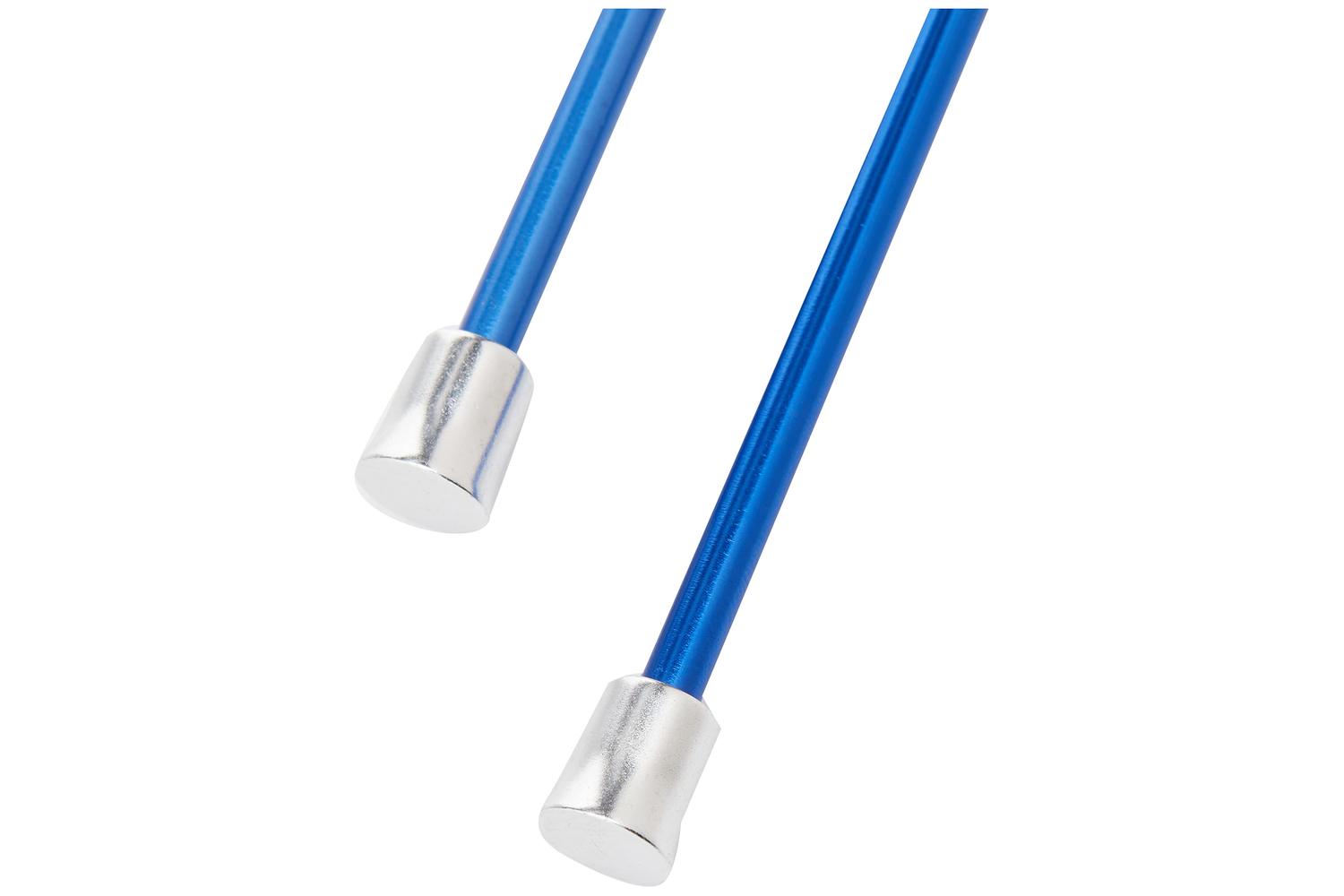 Aluminium knitting pins in a spectrum of bright and lively colours with beautiful silver tips. The lustrous metallic shades are specific to different sizes.