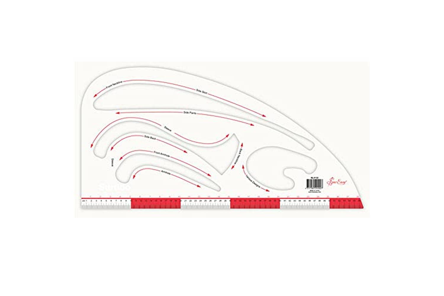 Description: Large all-in-one ruler for drafting and altering patterns. Made from durable and flexible plastic. Clearly marked metric measurements, 10cm increments make for easy reference. Smooth edges make it easy to use both sides. Easy to read labelling, makes it easy to choose the correct curve.