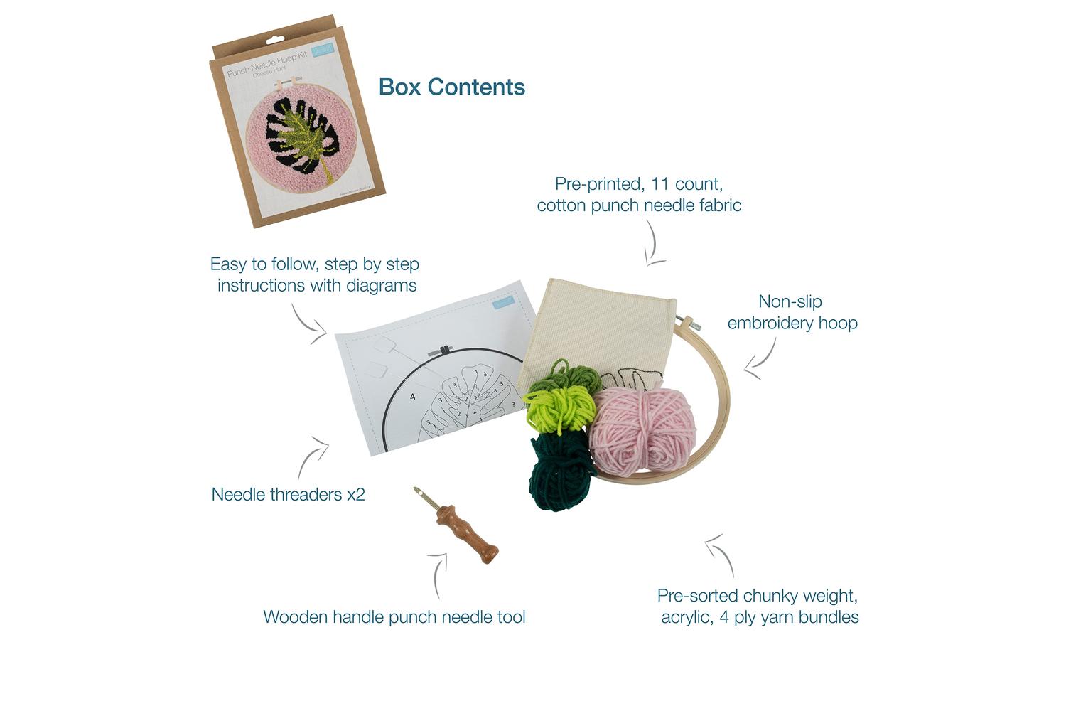 Description: Punch needle kit. These punch needle hoop kits are the perfect introduction to the art of needle punching and would make a perfect home decoration or a unique gift.