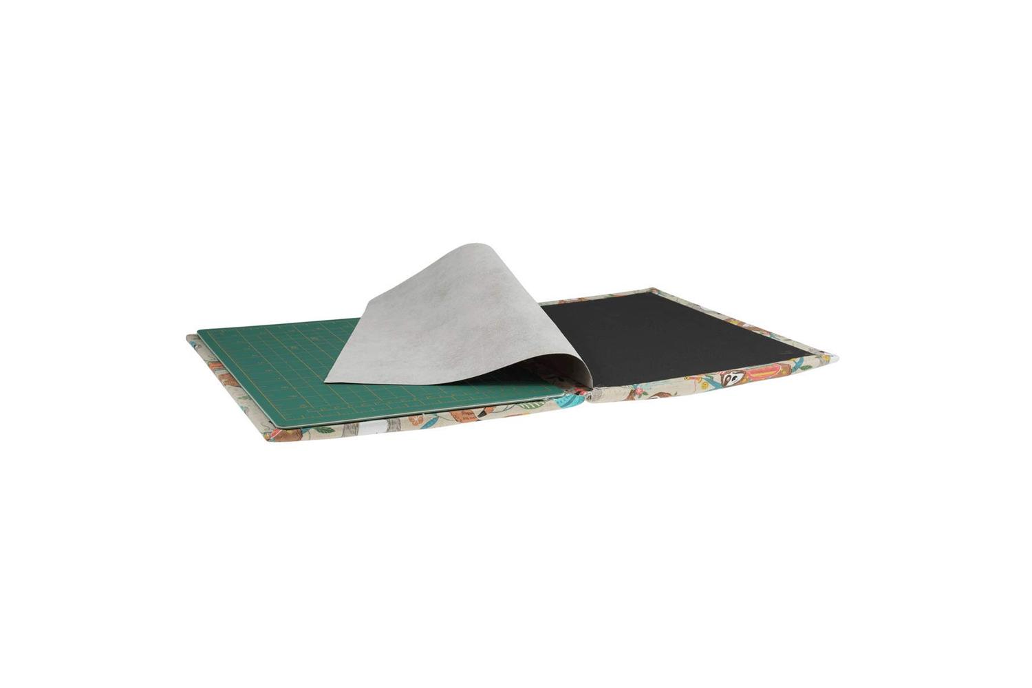 Description: This quilter's multi-mat will transform your patchwork and quilting projects with a compact tool that provides you with four unique mat surfaces to help with every stage of your crafting process. The four-in-one quilters mat provides you with the ideal work surface for many quilting and patchwork tasks: a cutting mat, an anti-skid layout mat, a marking mat and an ironing mat. It's easy to set up the surface you need, and this mat will help to ensure you achieve professional results every time with your quilting and patchworks. It will also help to protect your worktops and table tops. Great for classes or an addition for smaller craft spaces. Covered in 100% cotton fabric. Spot clean only.